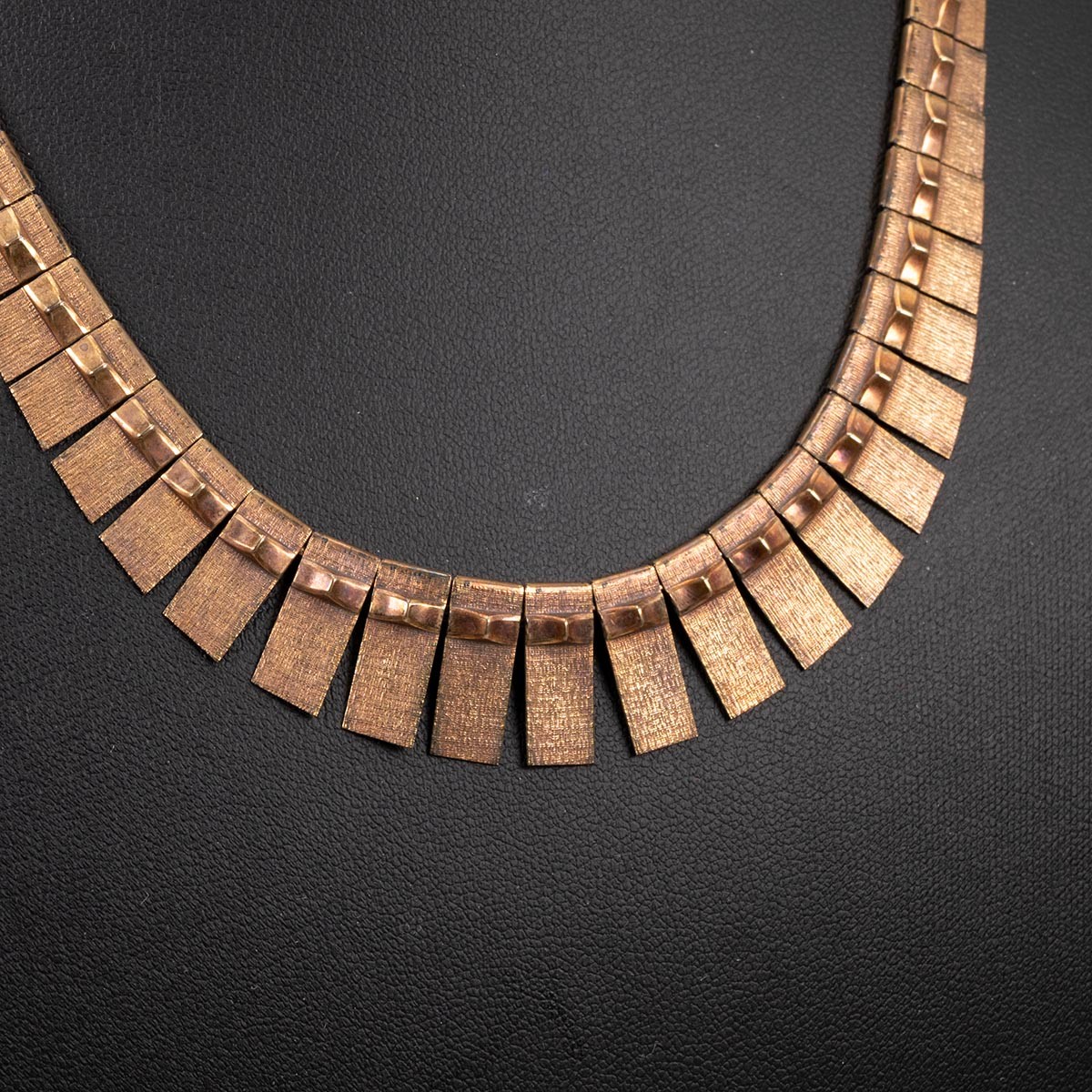 9ct gold hallmarked Egyptian style choker necklace with spring ring clasp and safety chain L40cm, weight 22 grams.