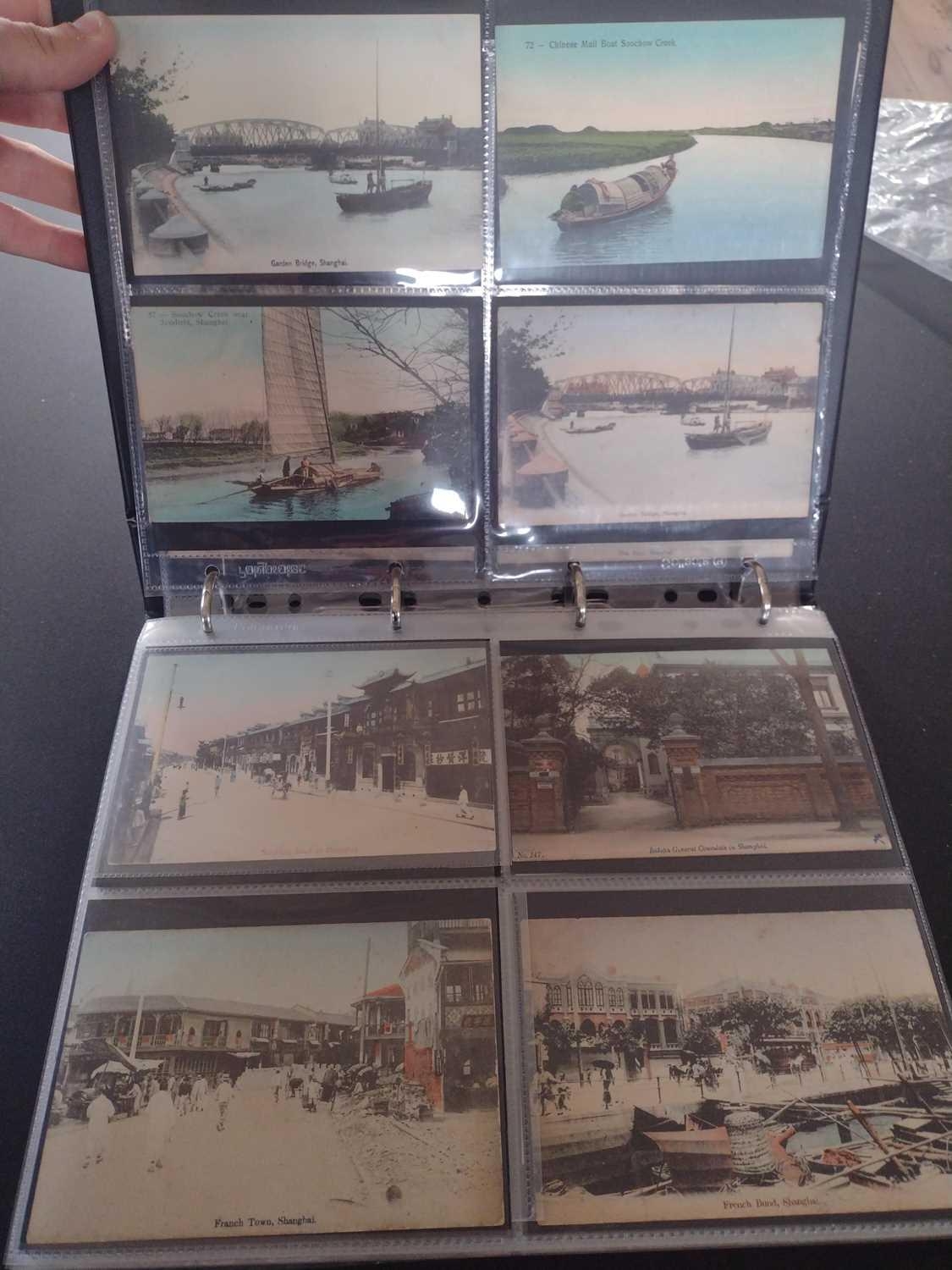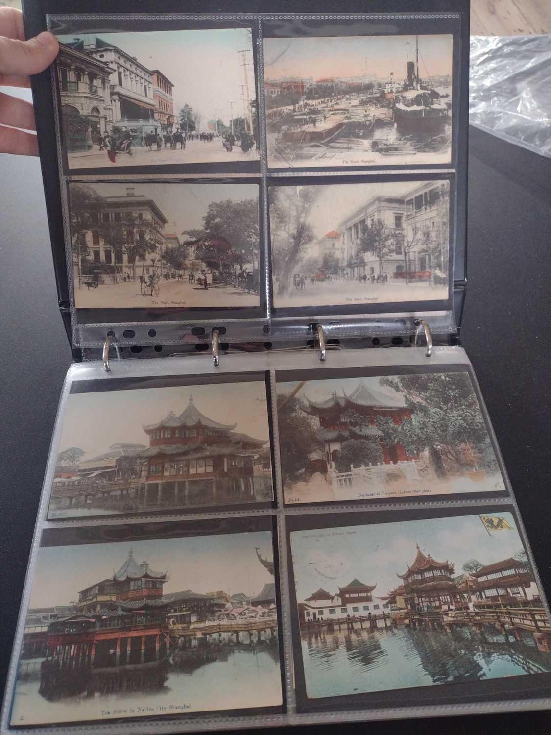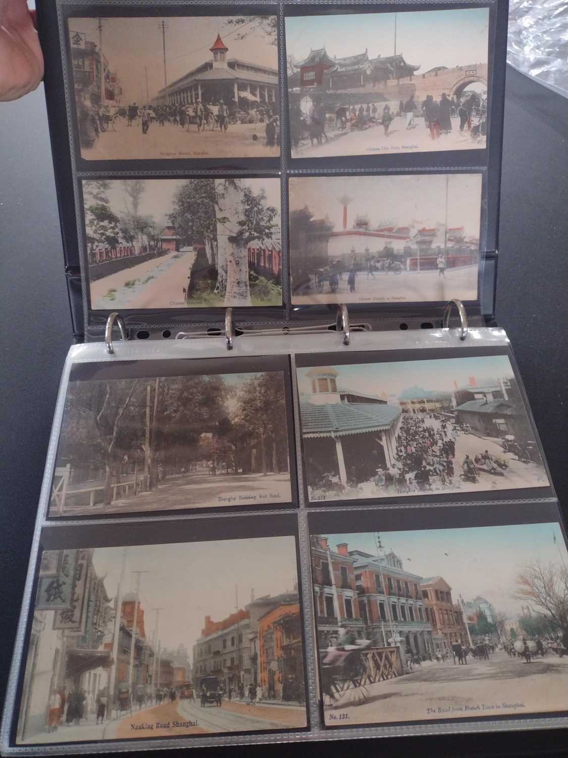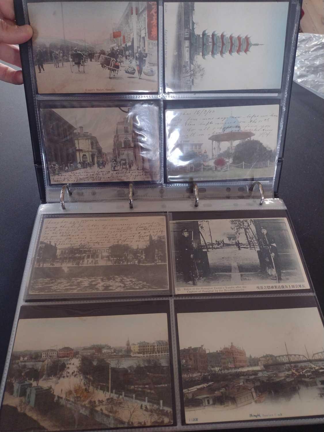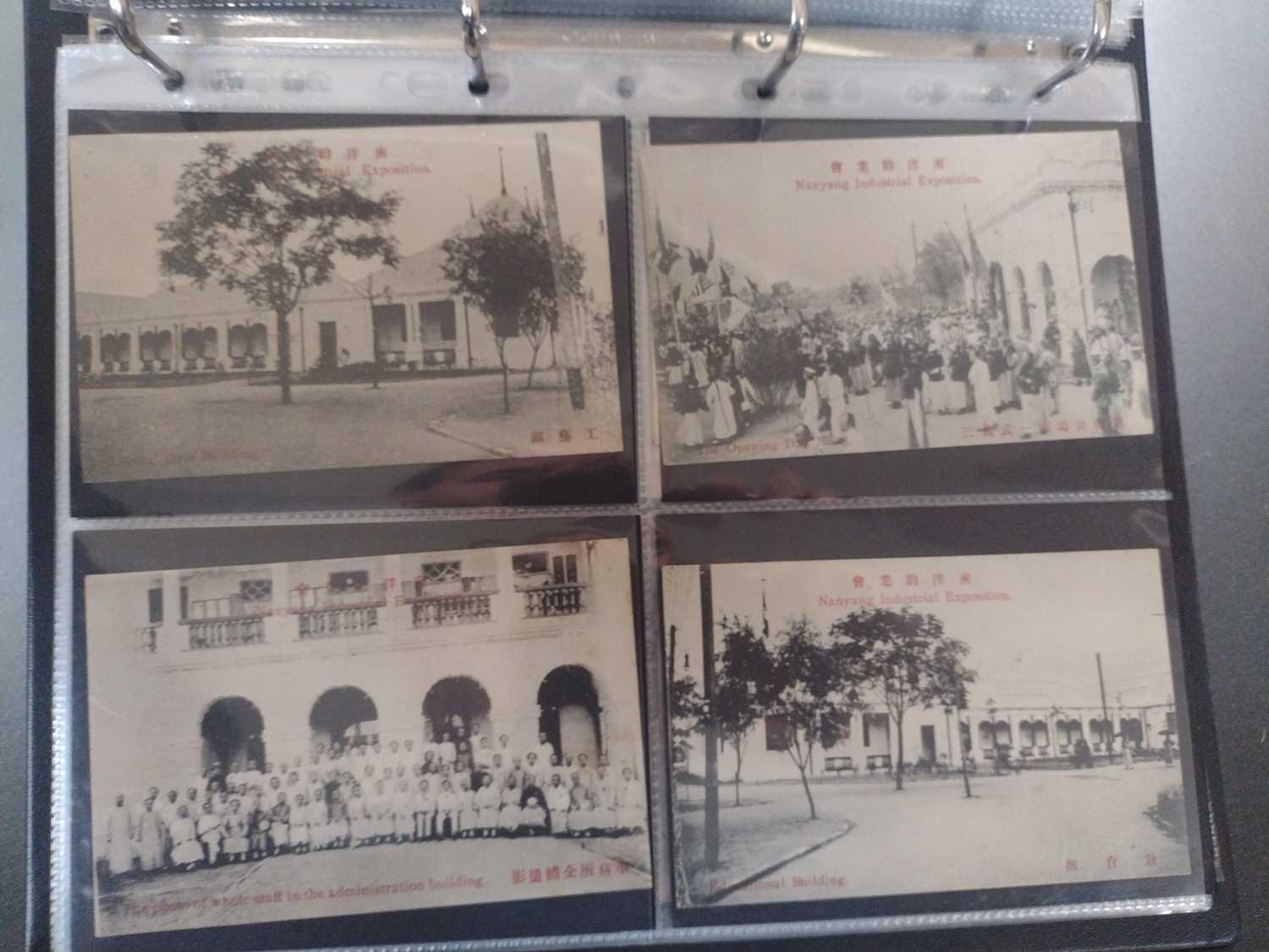A collection of Chinese and Hong Kong postcards, early 20th century. Two hundred and fifty postcards including Nanyang Industrial Exposition, Chinese Funeral Procession, Hong Kong and many of Shanghai, In a contemporary brown leather album, 33 x 29cm. (250) Please view the extra images online of all of the postcards.