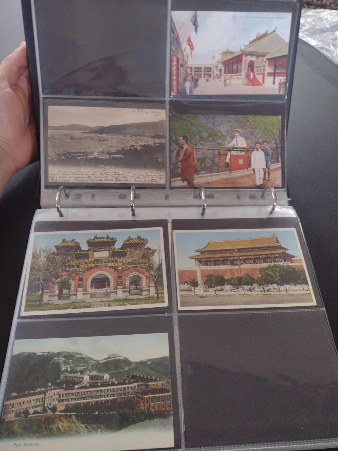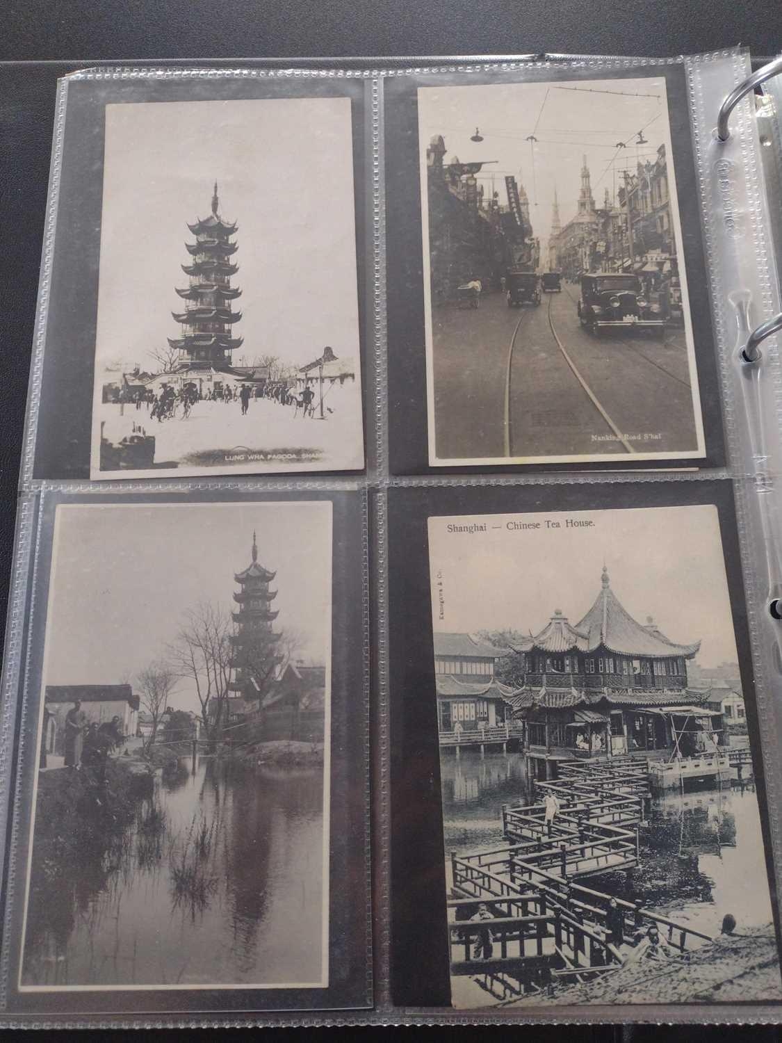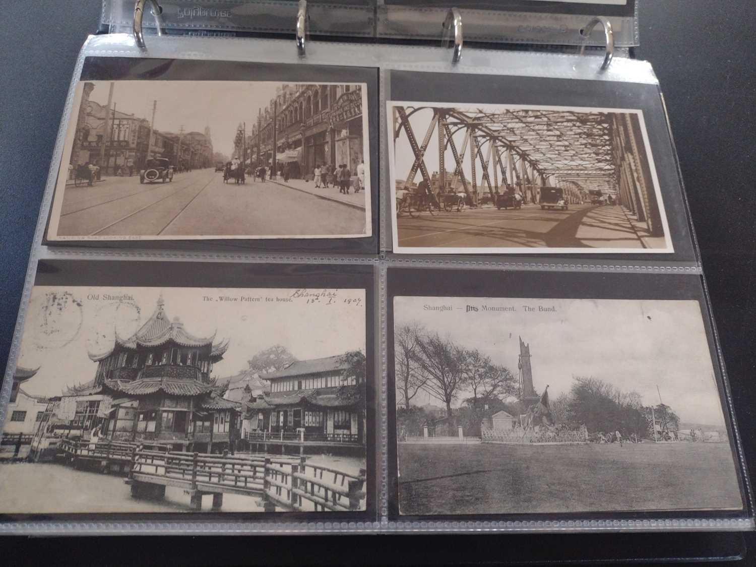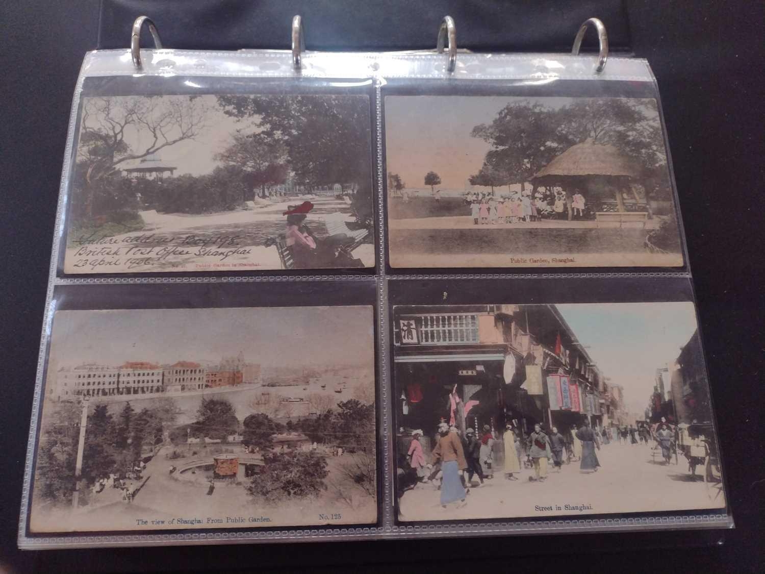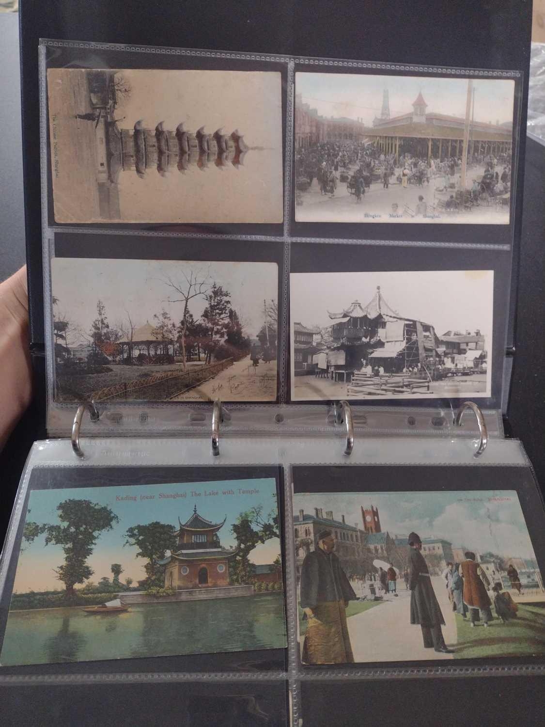 A collection of Chinese and Hong Kong postcards, early 20th century. Two hundred and fifty postcards including Nanyang Industrial Exposition, Chinese Funeral Procession, Hong Kong and many of Shanghai, In a contemporary brown leather album, 33 x 29cm. (250) Please view the extra images online of all of the postcards.
