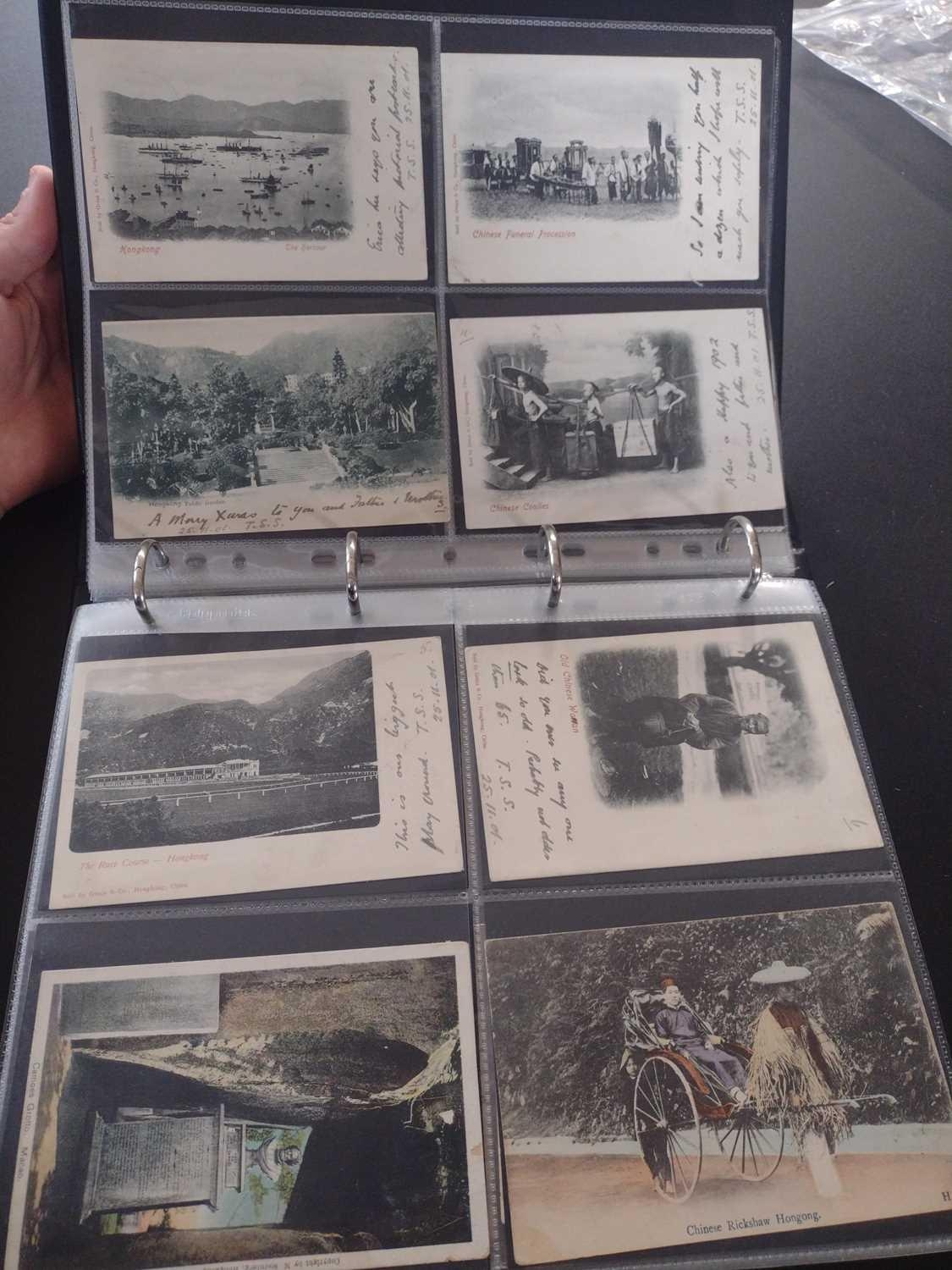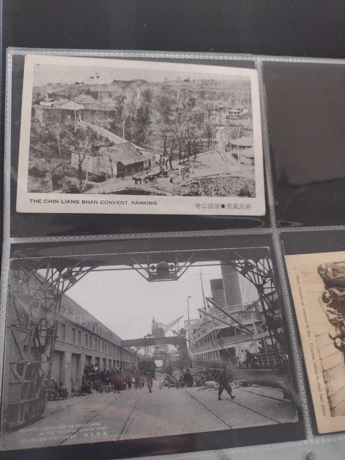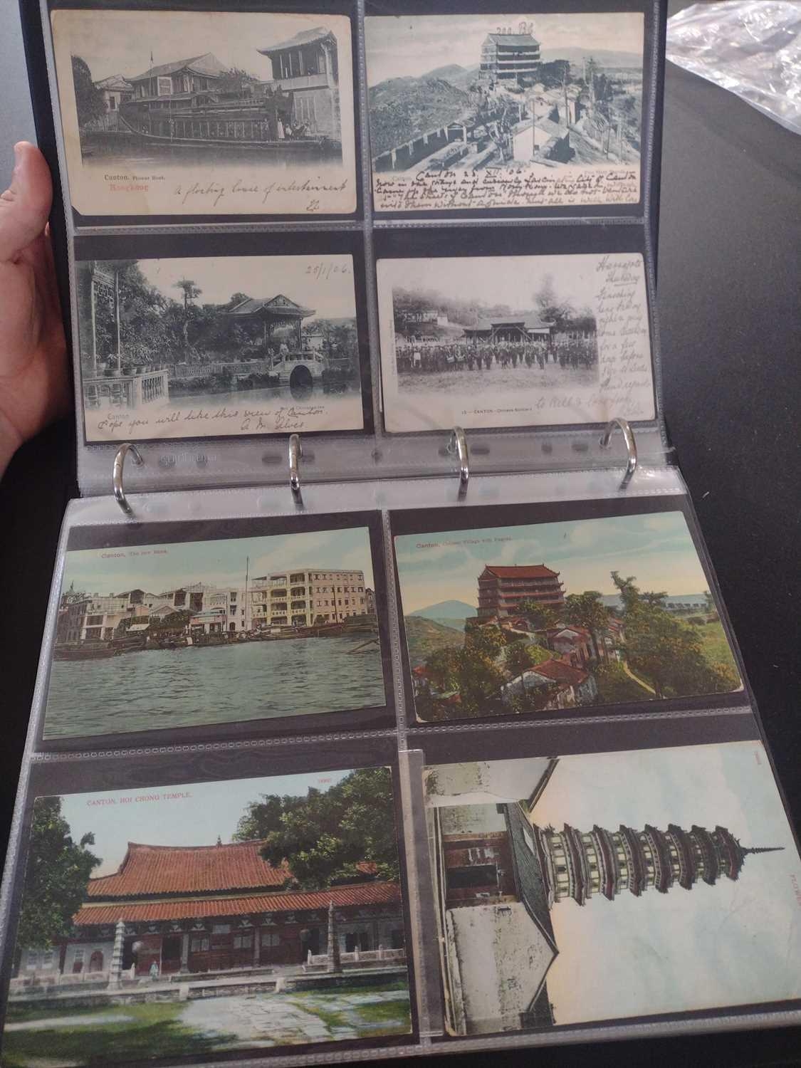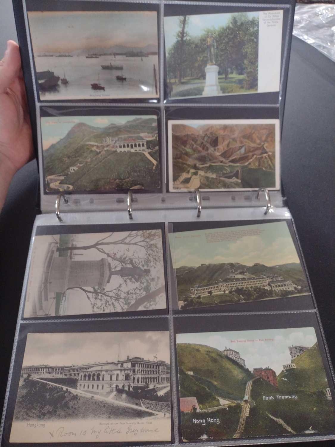 A collection of Chinese and Hong Kong postcards, early 20th century. Two hundred and fifty postcards including Nanyang Industrial Exposition, Chinese Funeral Procession, Hong Kong and many of Shanghai, In a contemporary brown leather album, 33 x 29cm. (250) Please view the extra images online of all of the postcards.