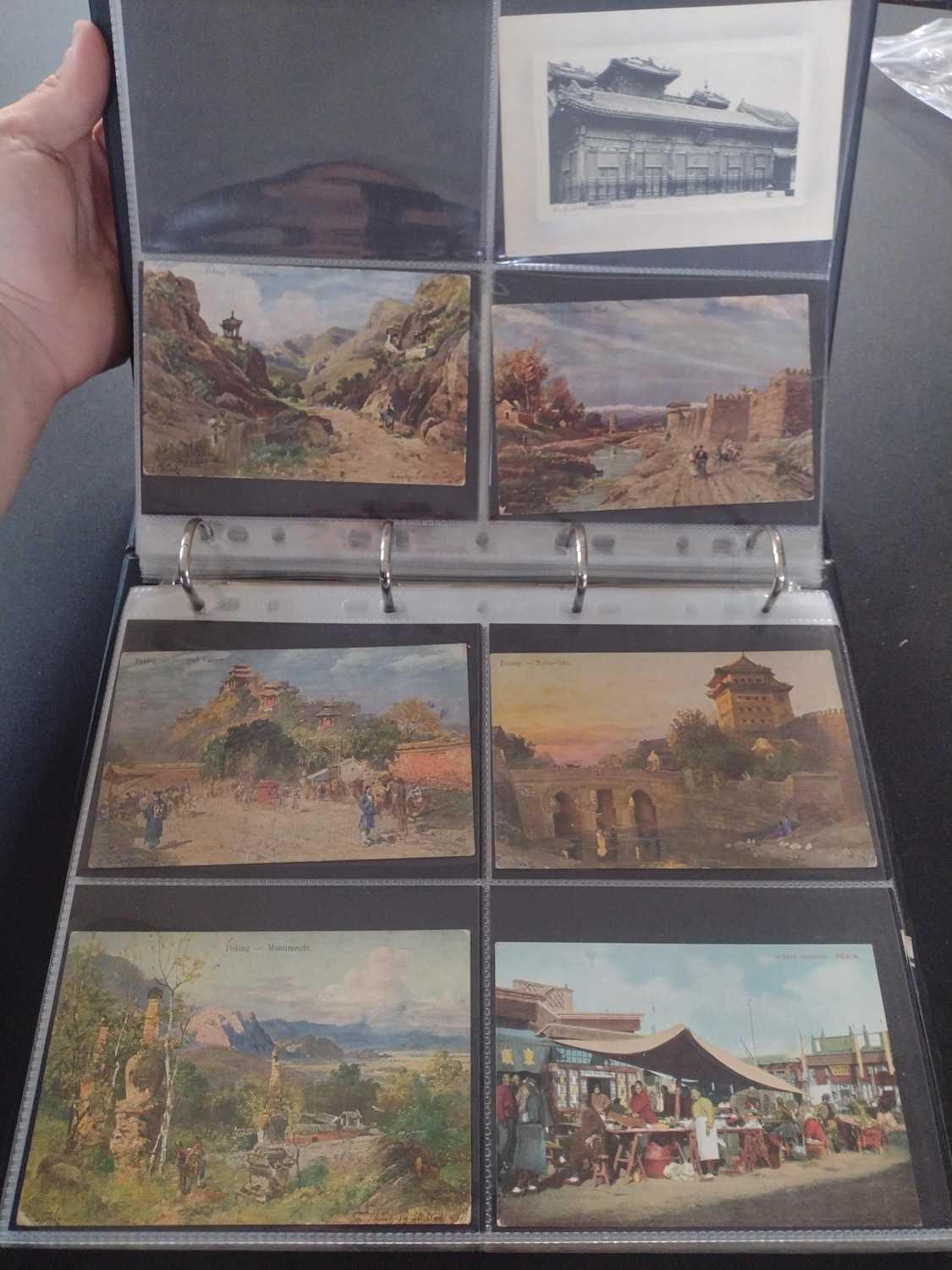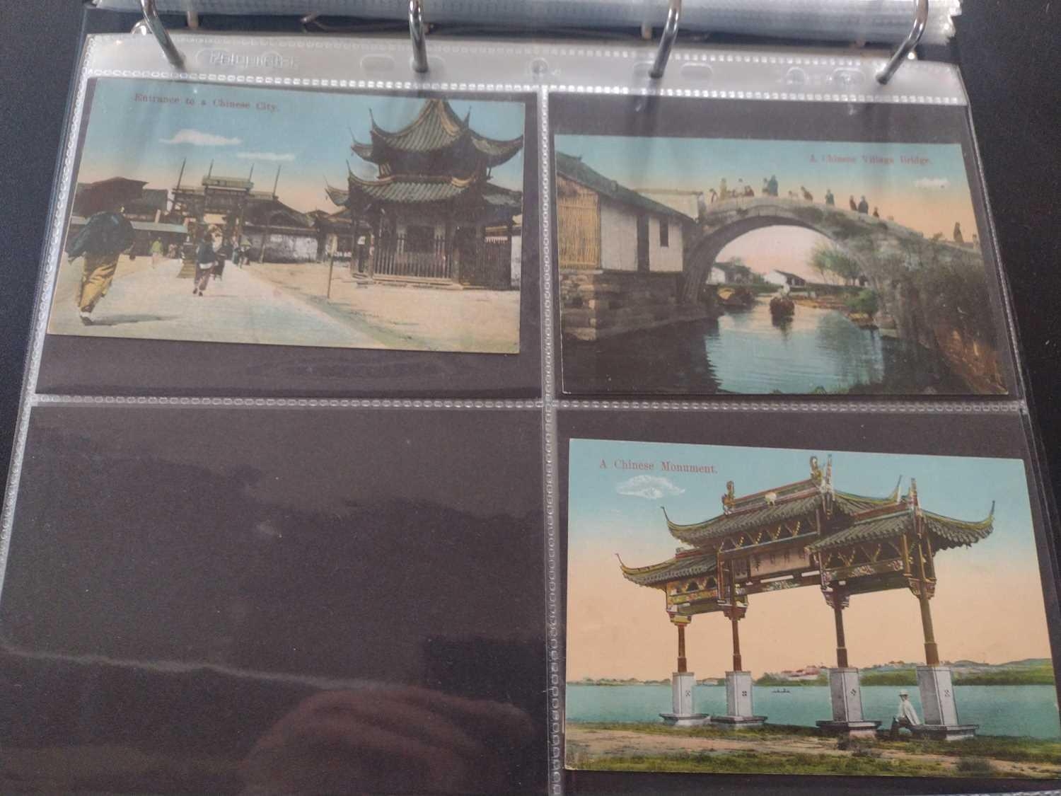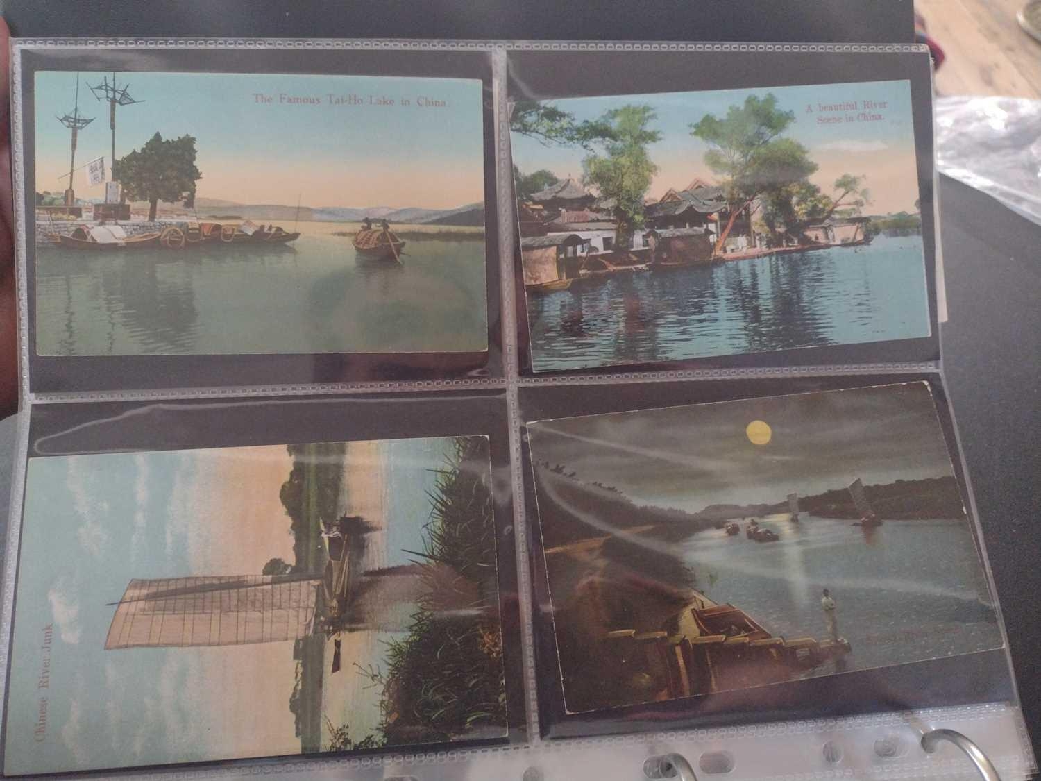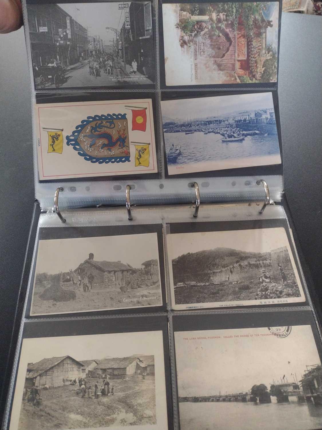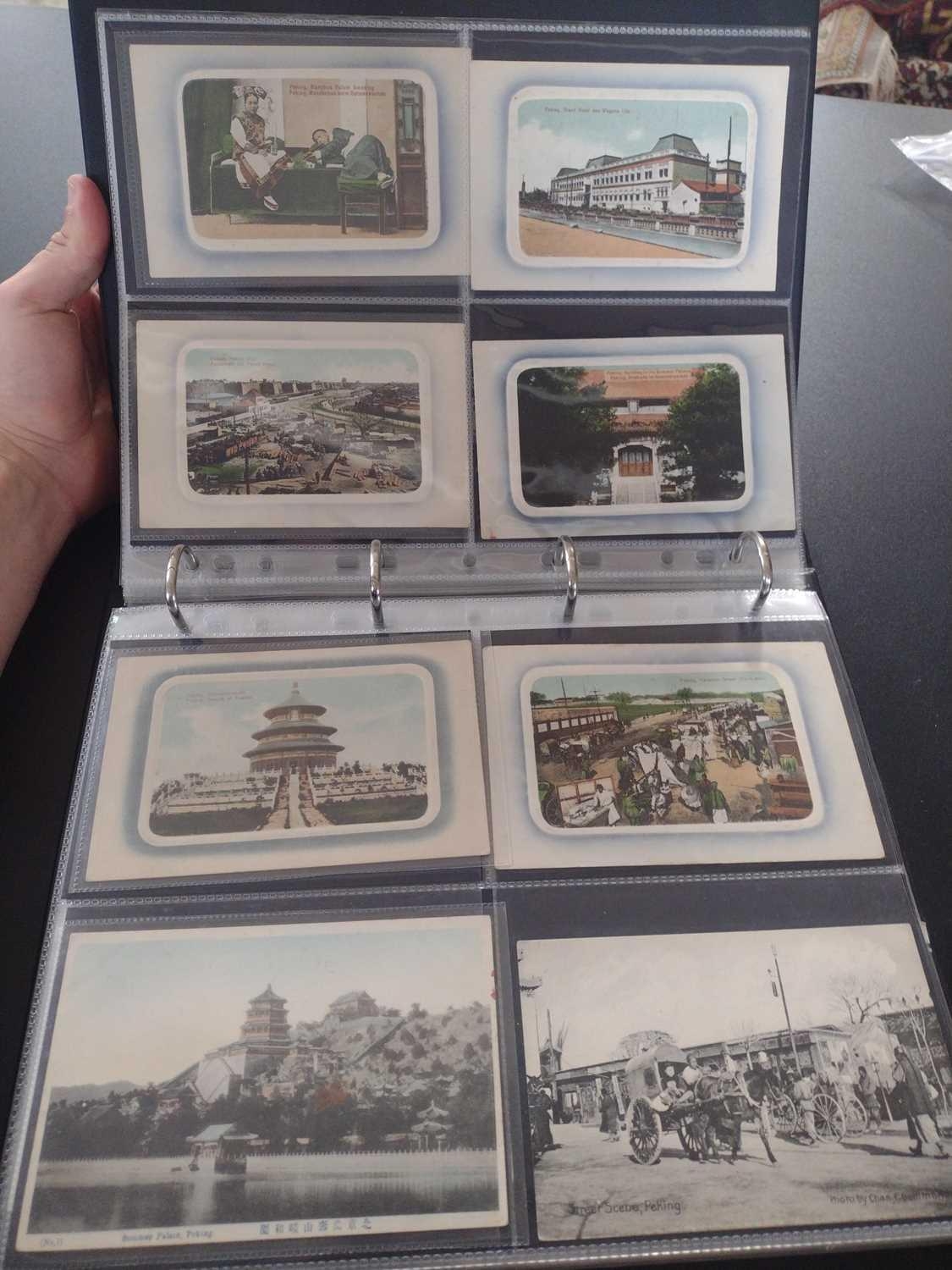 A collection of Chinese and Hong Kong postcards, early 20th century. Two hundred and fifty postcards including Nanyang Industrial Exposition, Chinese Funeral Procession, Hong Kong and many of Shanghai, In a contemporary brown leather album, 33 x 29cm. (250) Please view the extra images online of all of the postcards.
