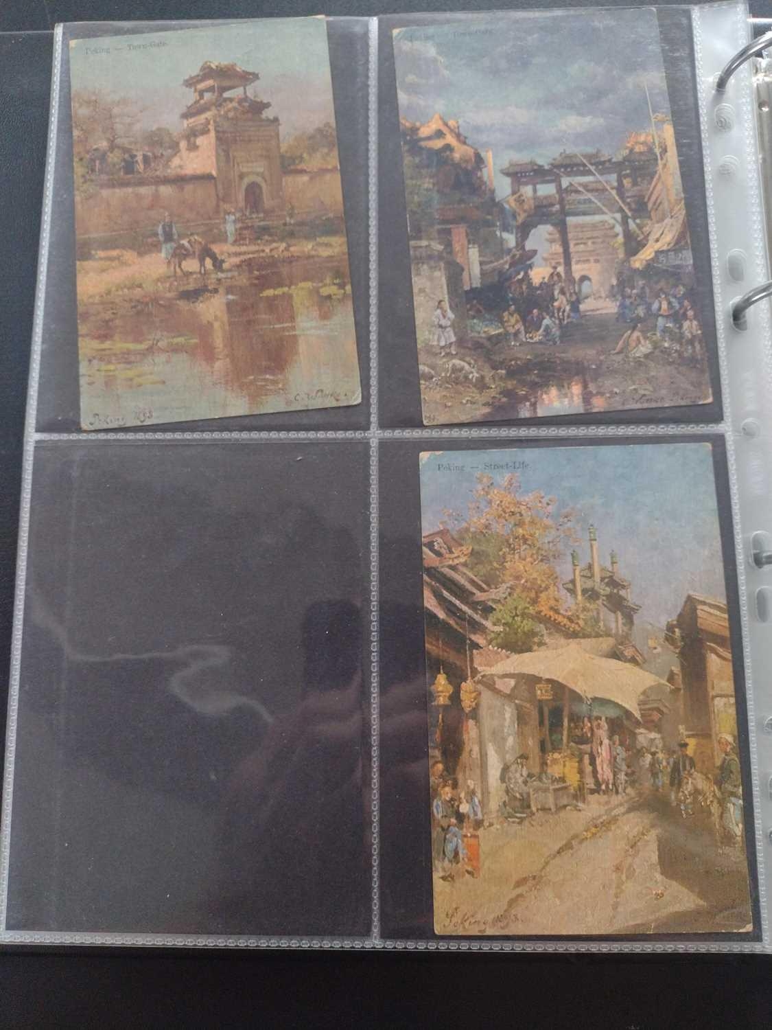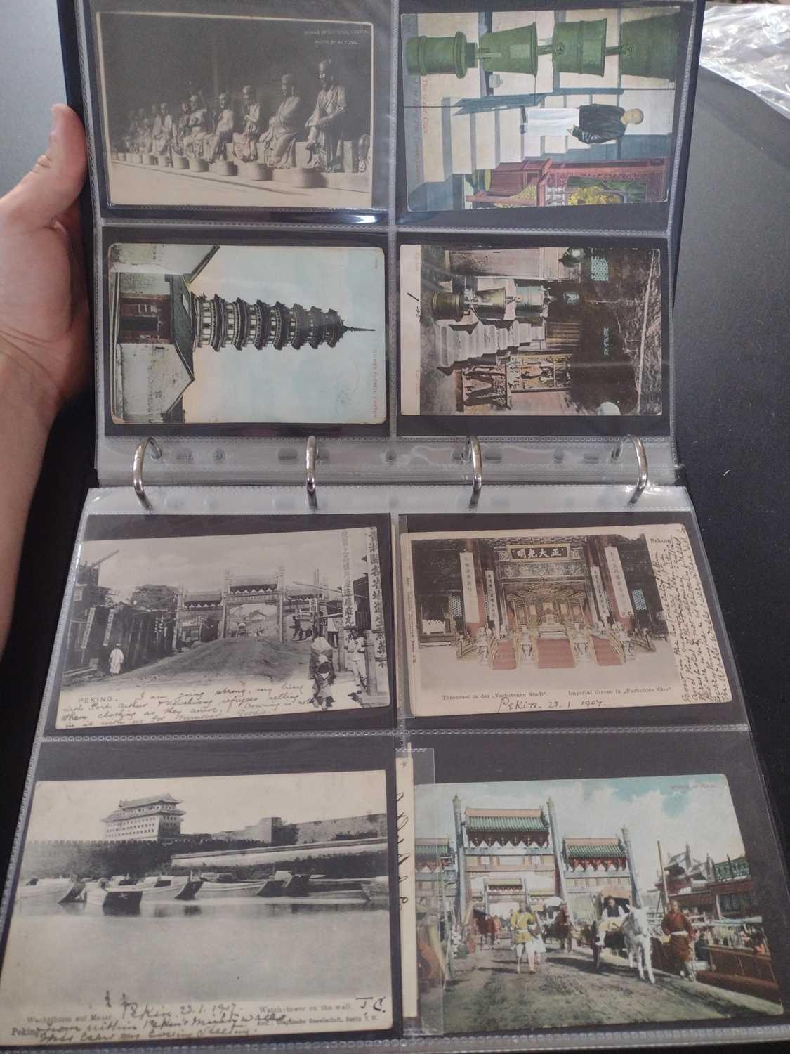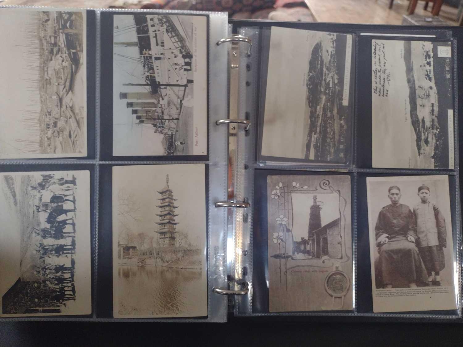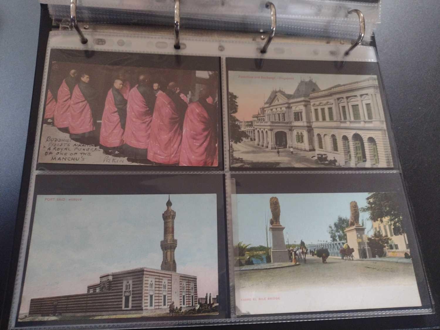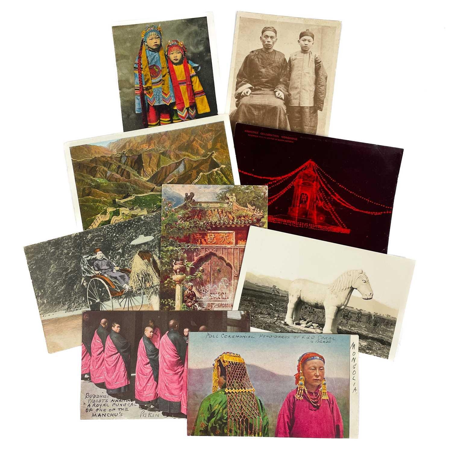 A collection of Chinese and Hong Kong postcards, early 20th century. Two hundred and fifty postcards including Nanyang Industrial Exposition, Chinese Funeral Procession, Hong Kong and many of Shanghai, In a contemporary brown leather album, 33 x 29cm. (250) Please view the extra images online of all of the postcards.