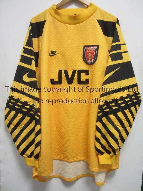 ARSENAL GOALKEEPER SHIRT Yellow long sleeve with black pattern for 1994-96 with Premier League number 1 on the back. Six XXL Good