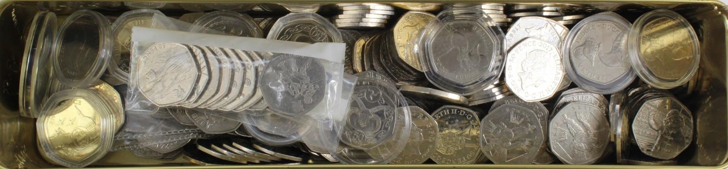 GB & Crown Islands Decimal Commemorative 50p's, £150 face including 11x various London Olympics, and 5x Jemima Puddleducks.