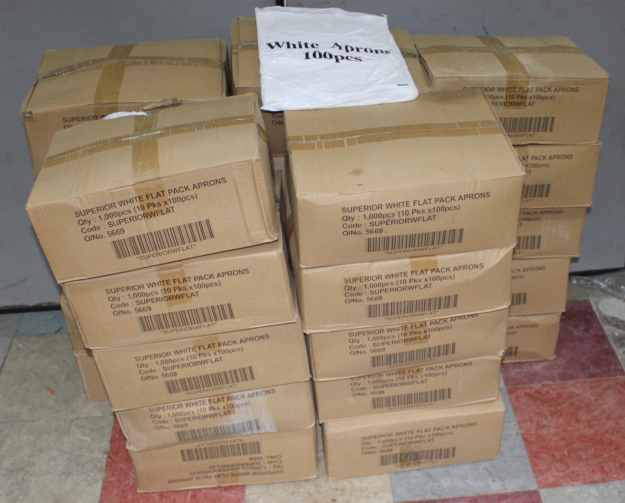 27 BOXES (10 PACKS OF 100 PER BOX) SUPERIOR WHITE FLAT PACK APRONS