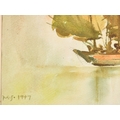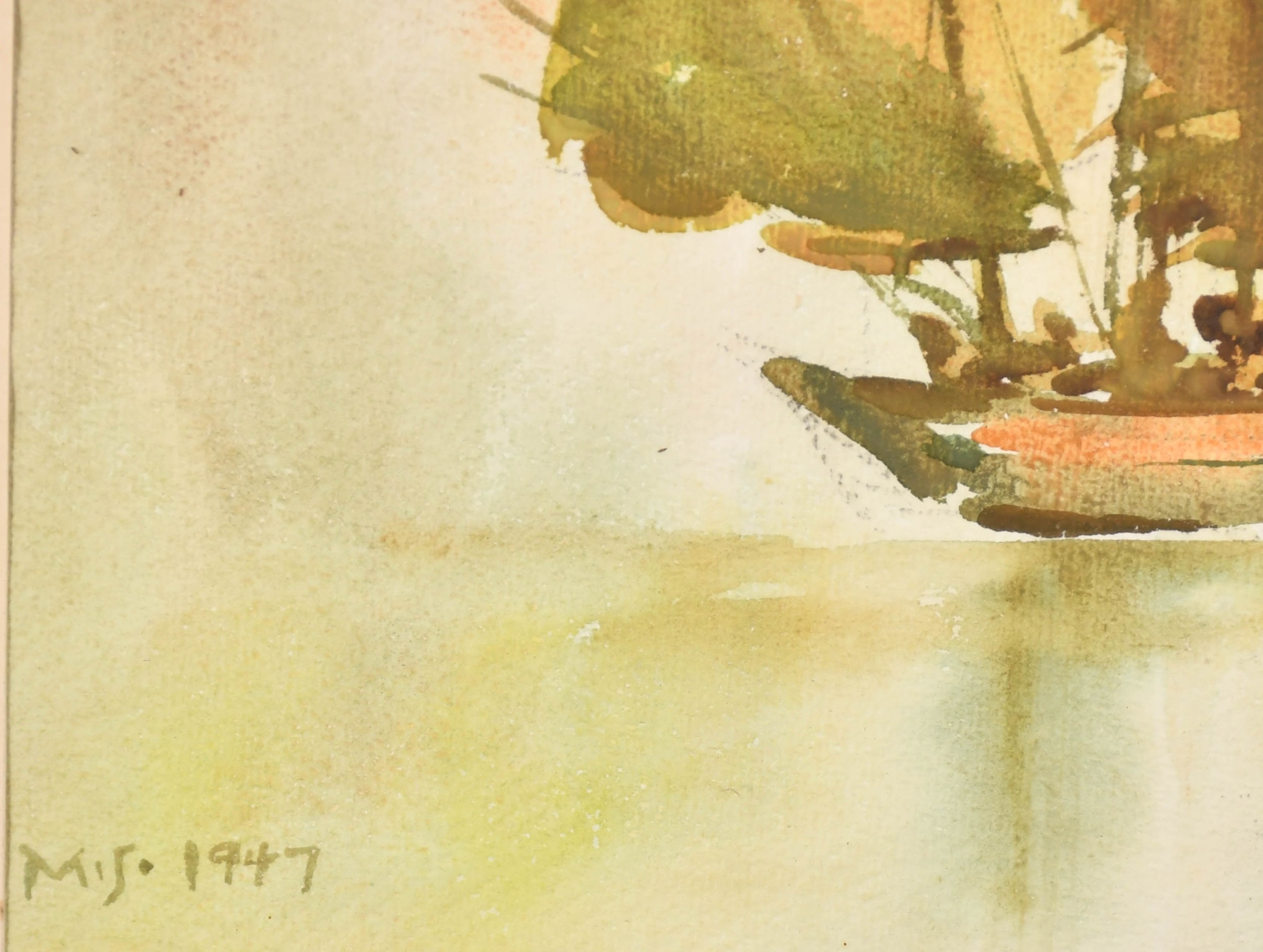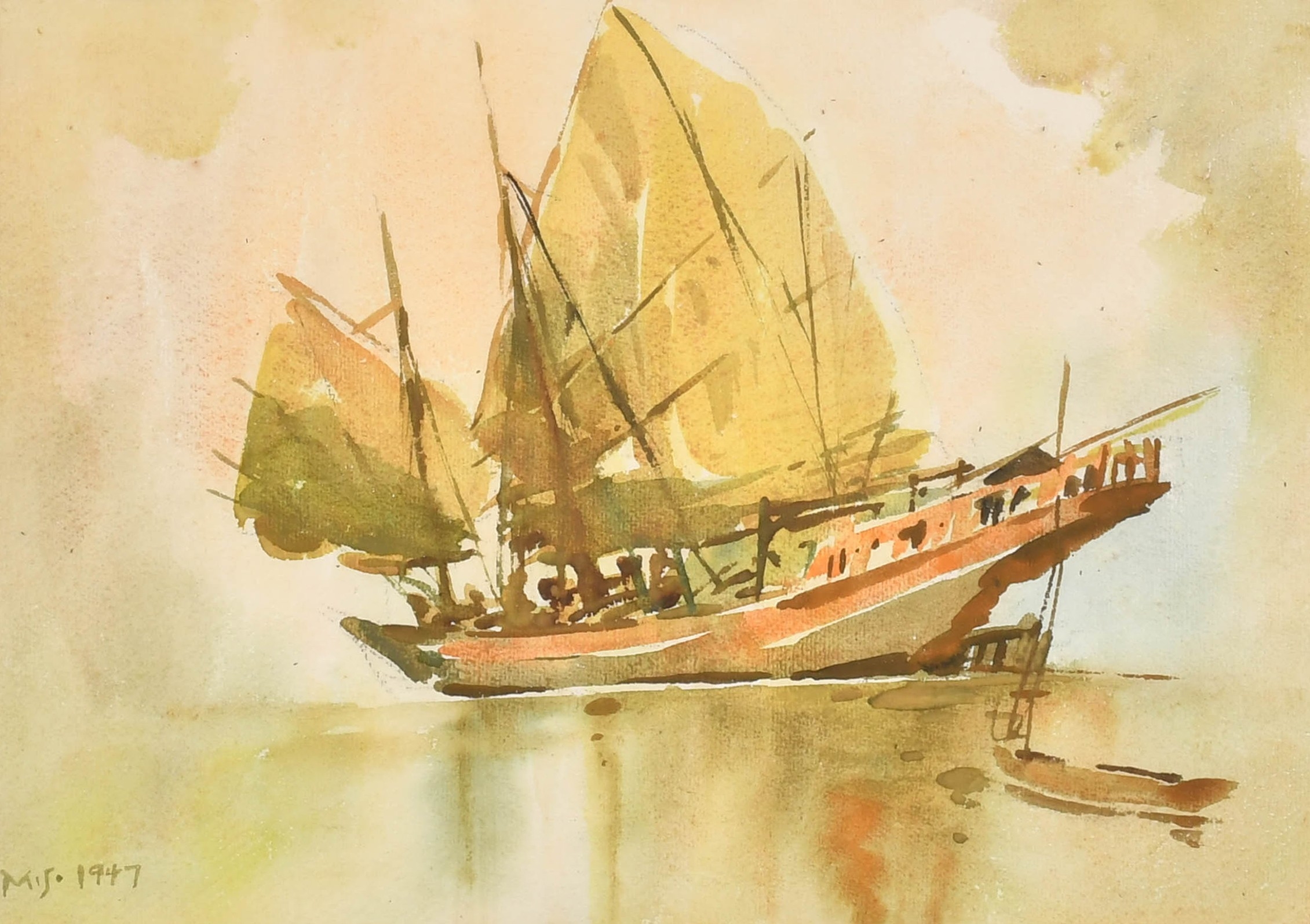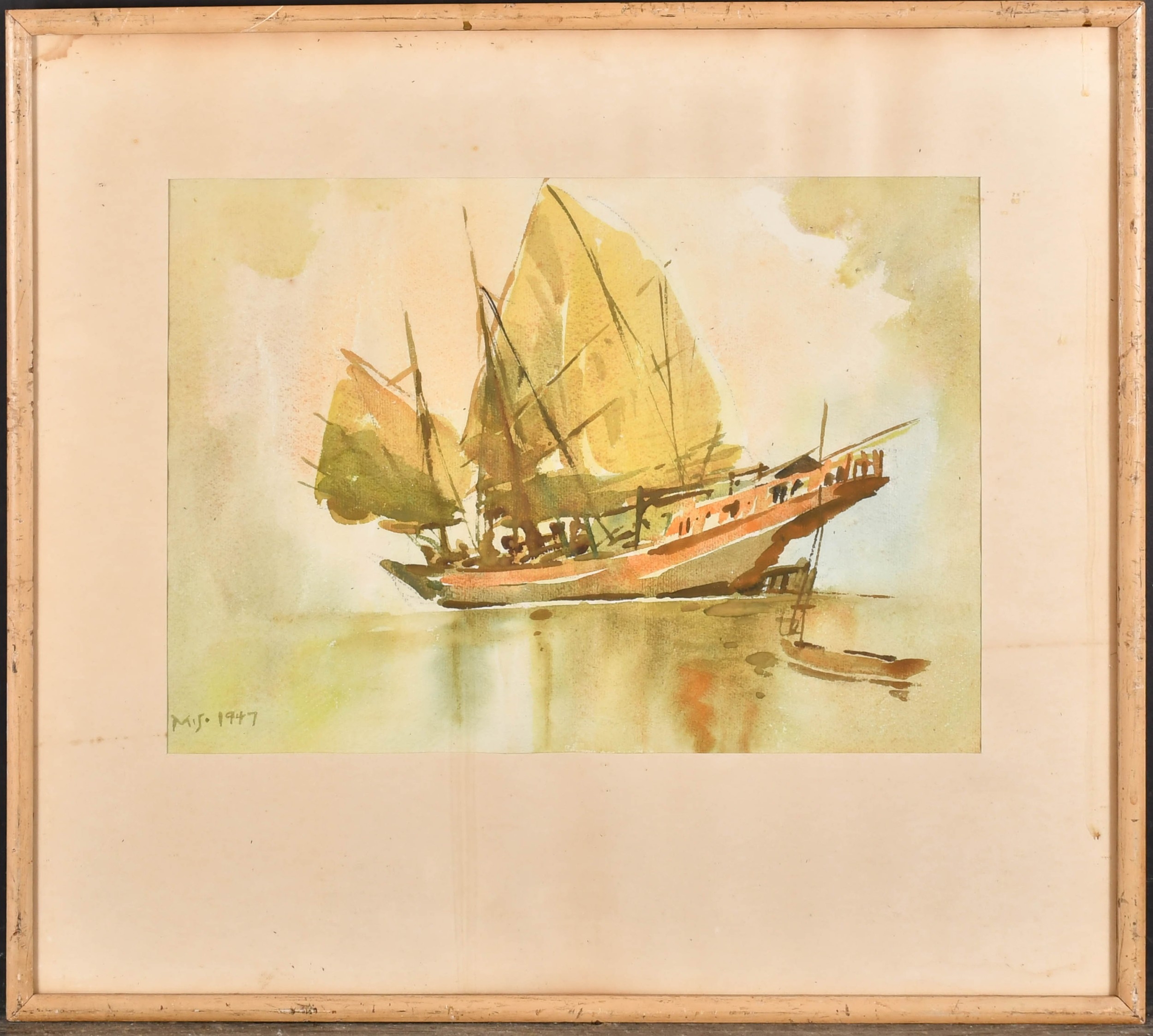 Mun Sen Yong (1896-1962) Malaysian. Junk at Sea, Watercolour, Signed with initials and dated 1947, 10.5" x 14.75" (26.7 x 37.4cm)