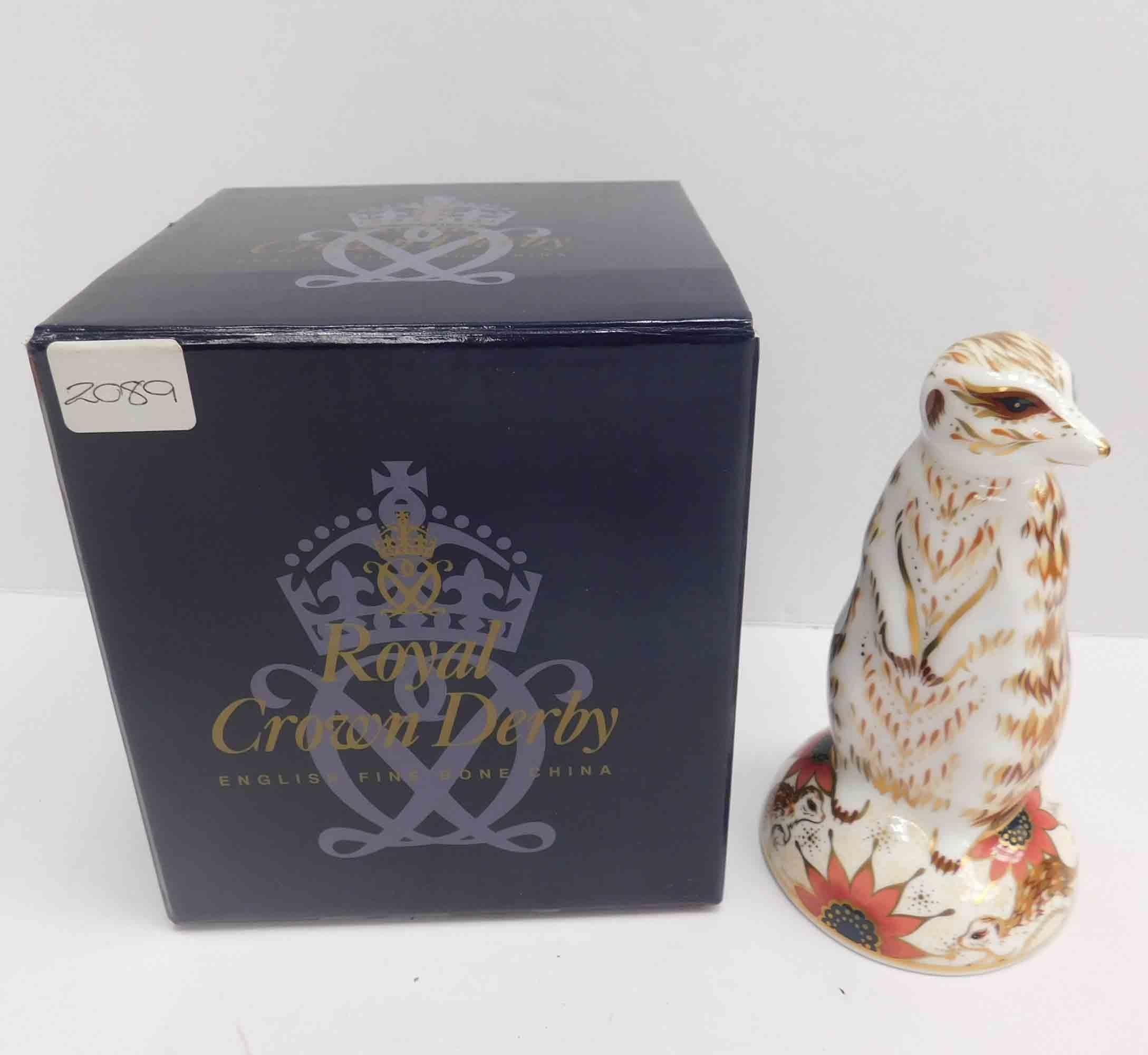 Royal Crown Derby - Meerkat paperweight with gold stopper and box - no damage
