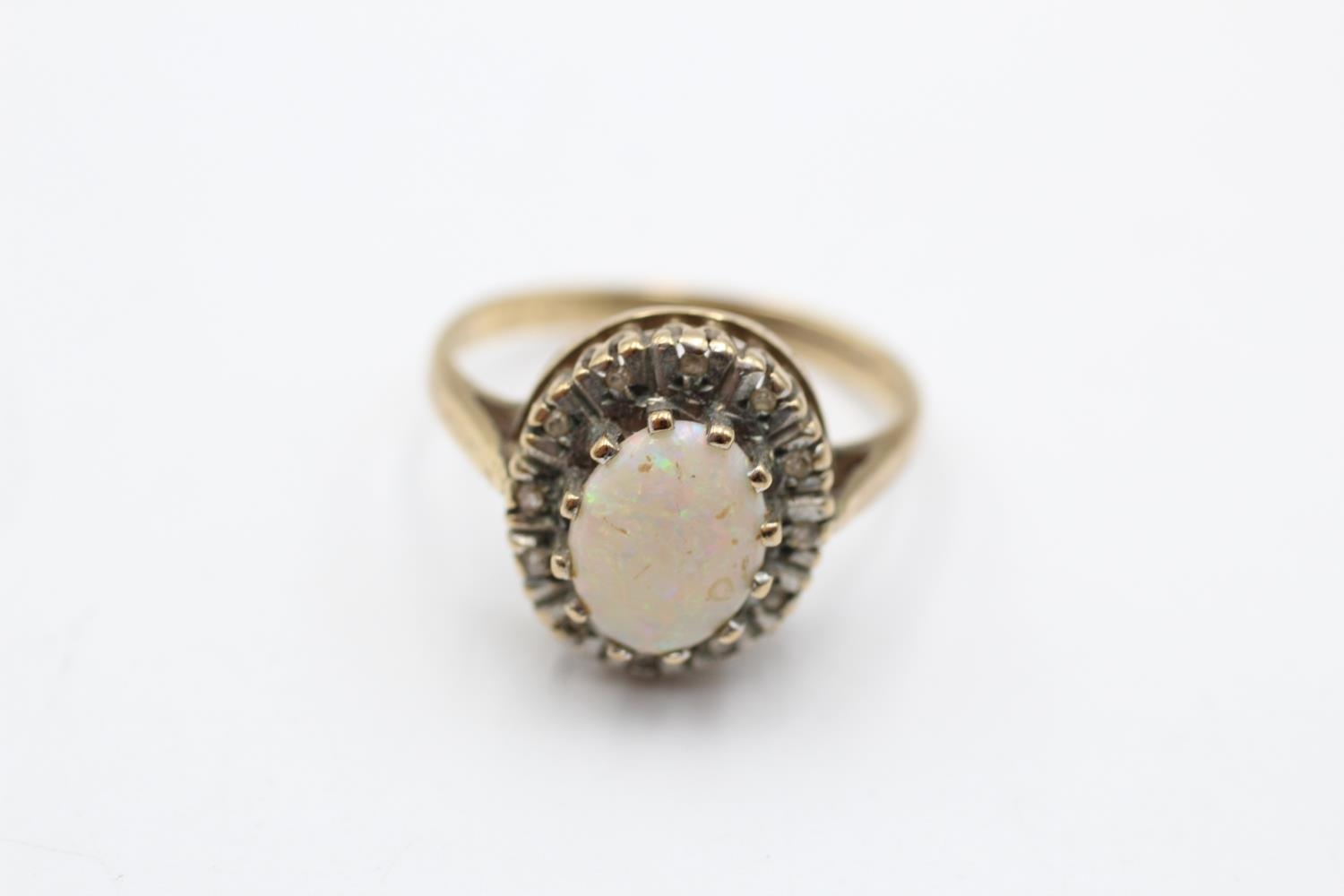 9ct gold vintage opal and diamond dress ring (2.8g) Size K