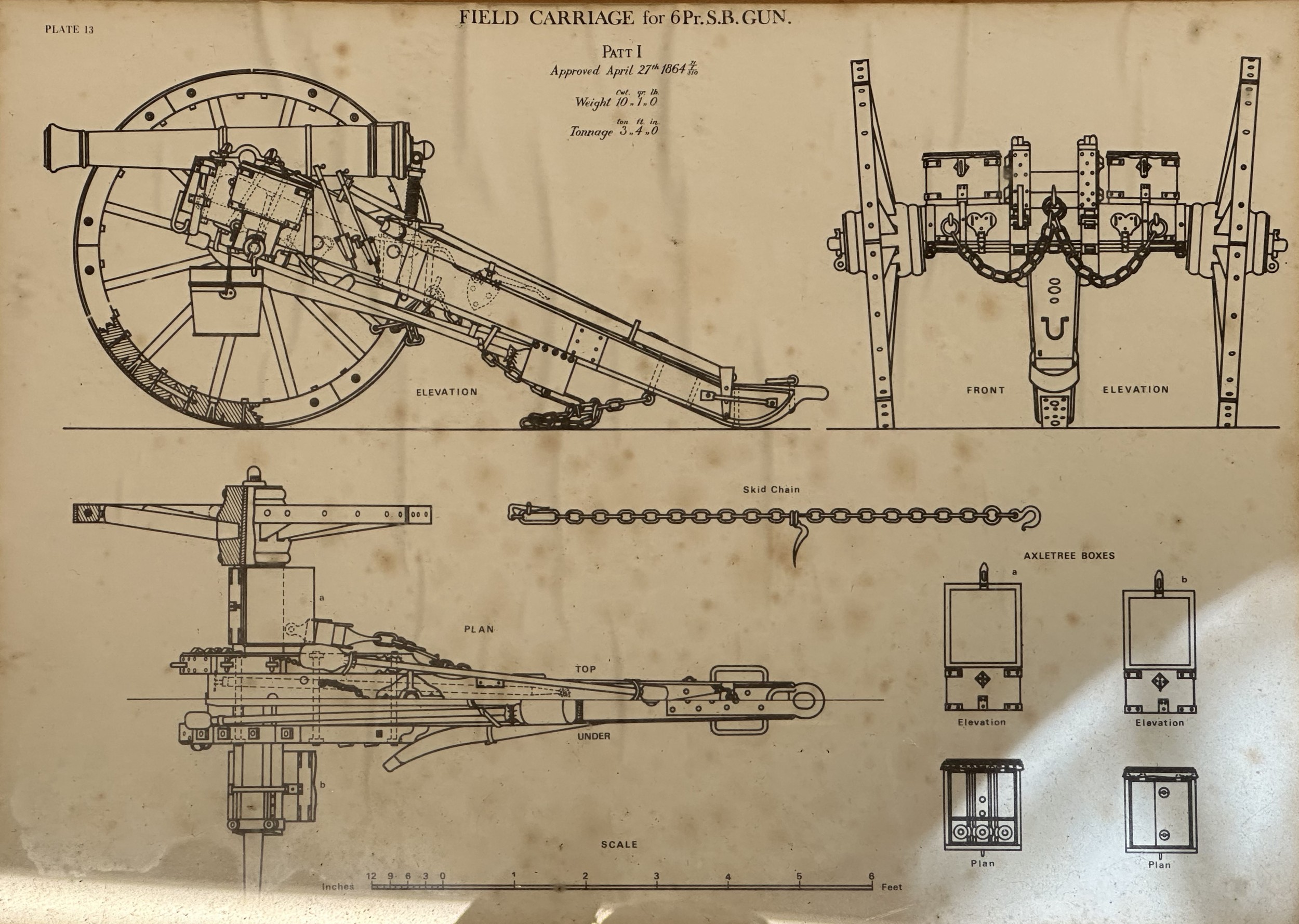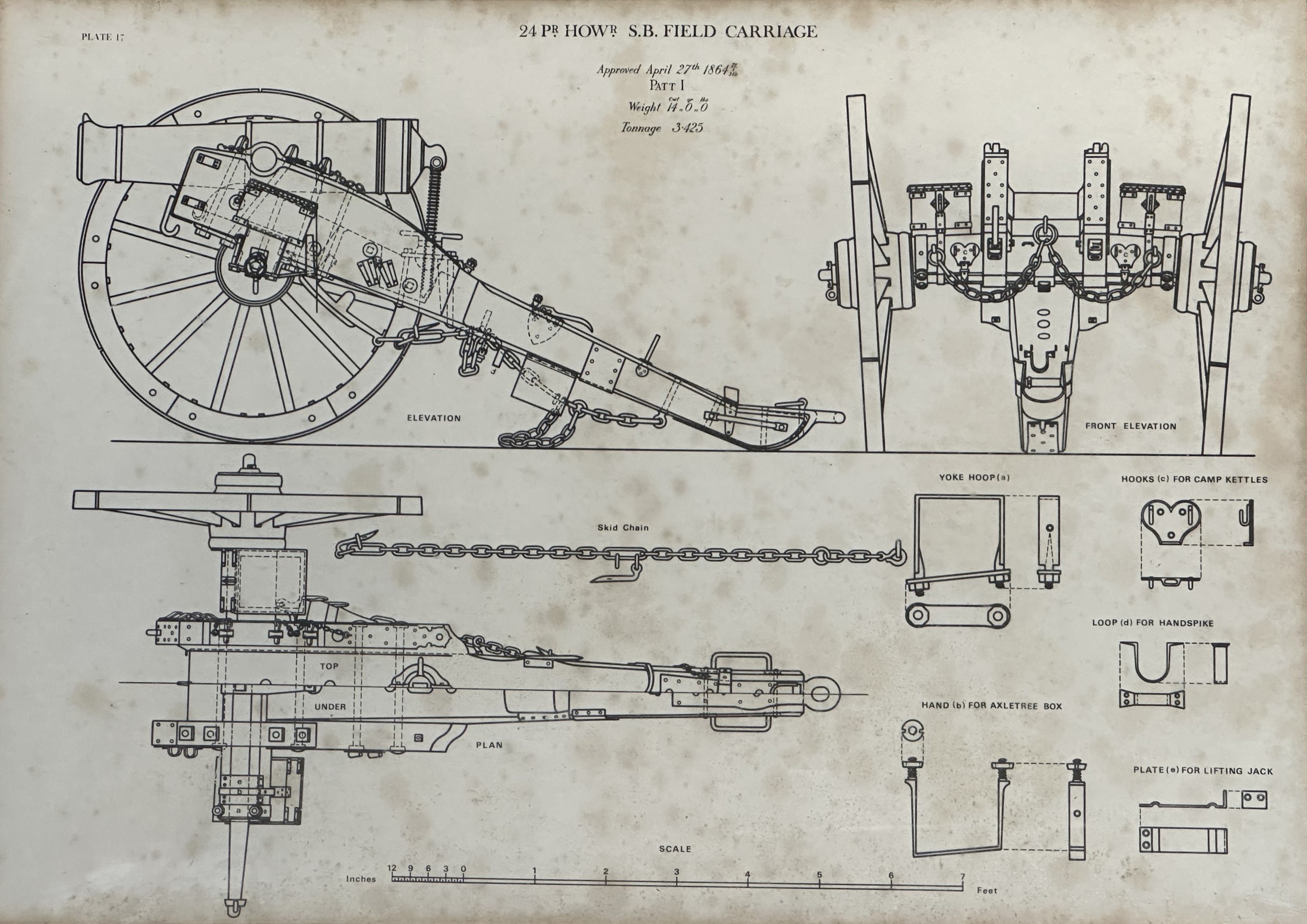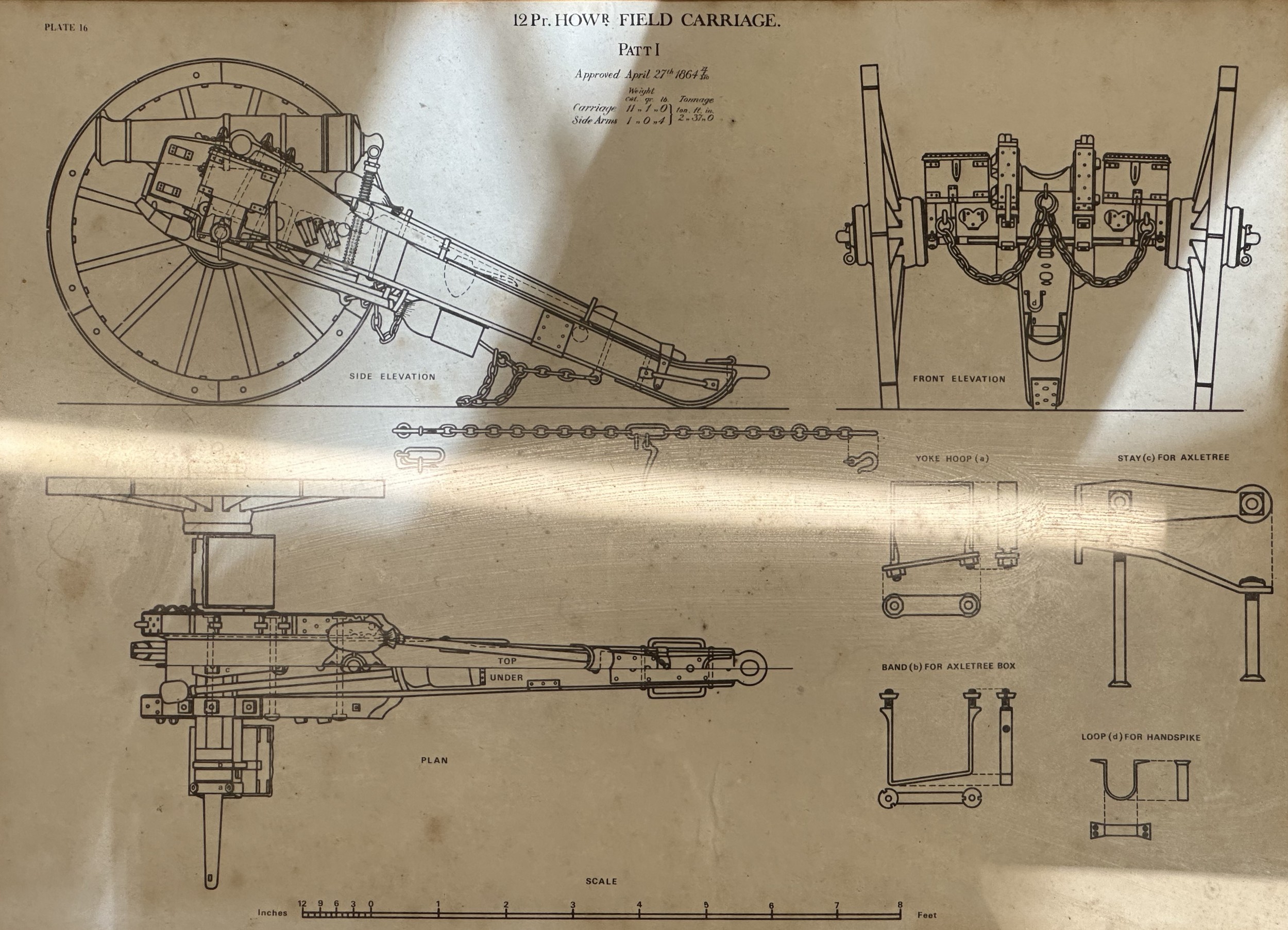 Set of five framed prints taken from Royal Artillery Manuals. Overall size including frame 52cm x 42cm. (5)