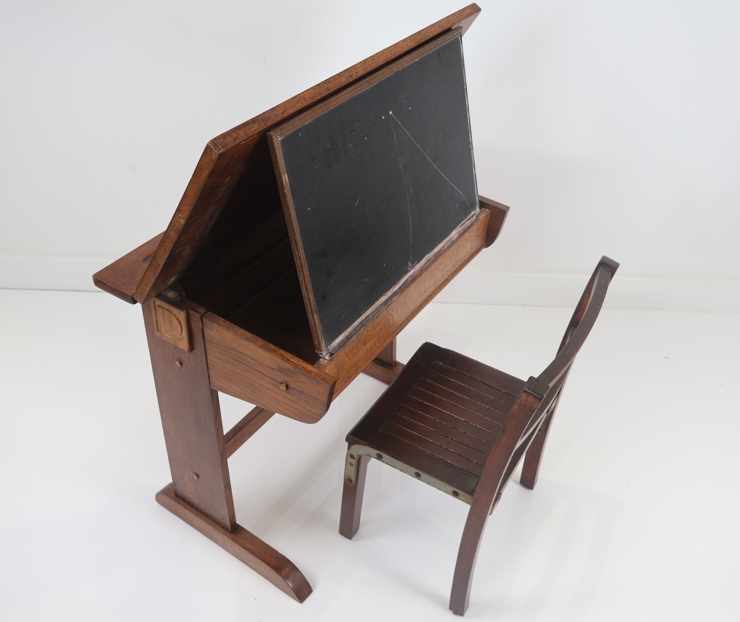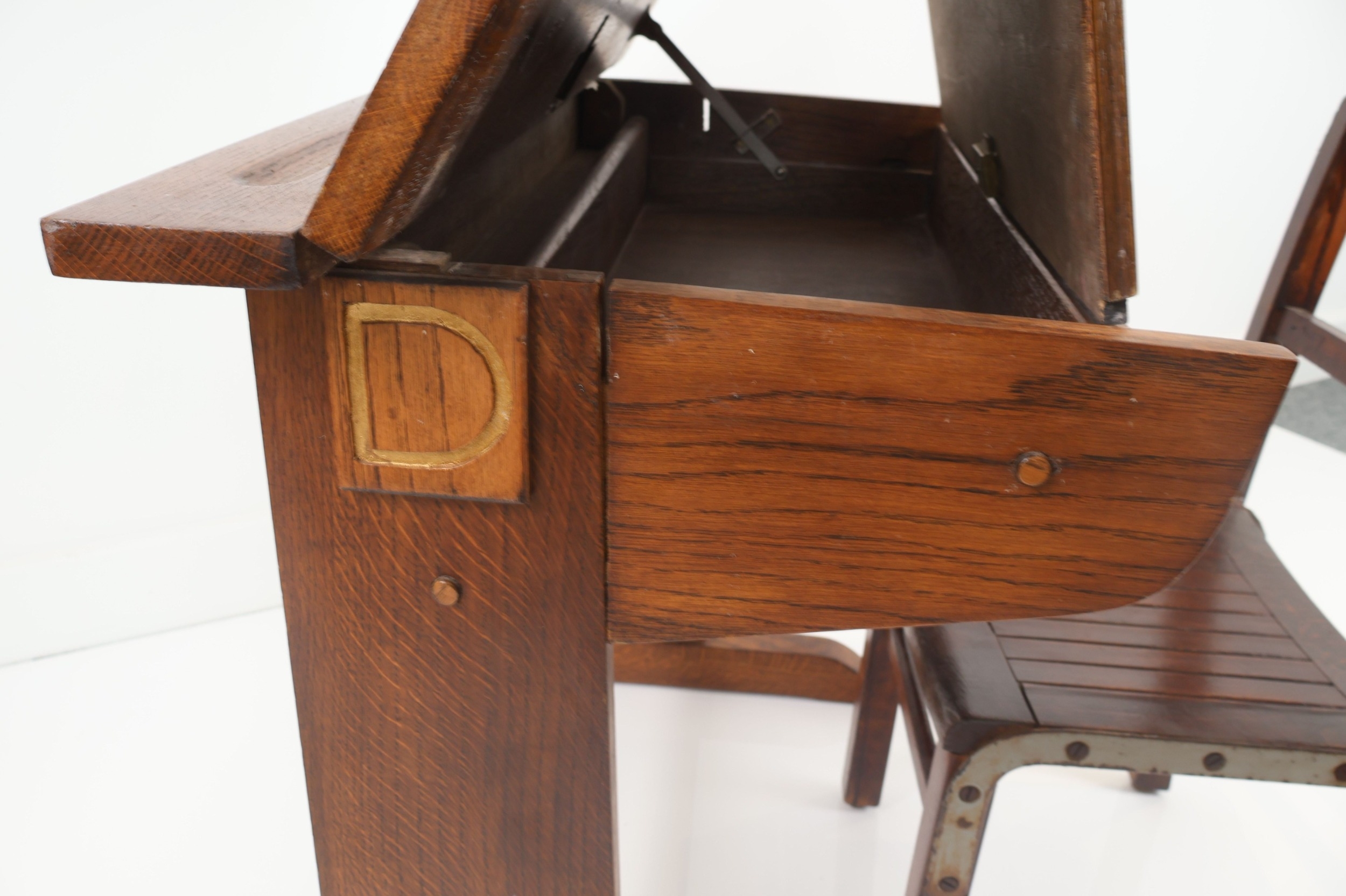 Vintage Oak School Desk and Associated Chair, Early 20th Century