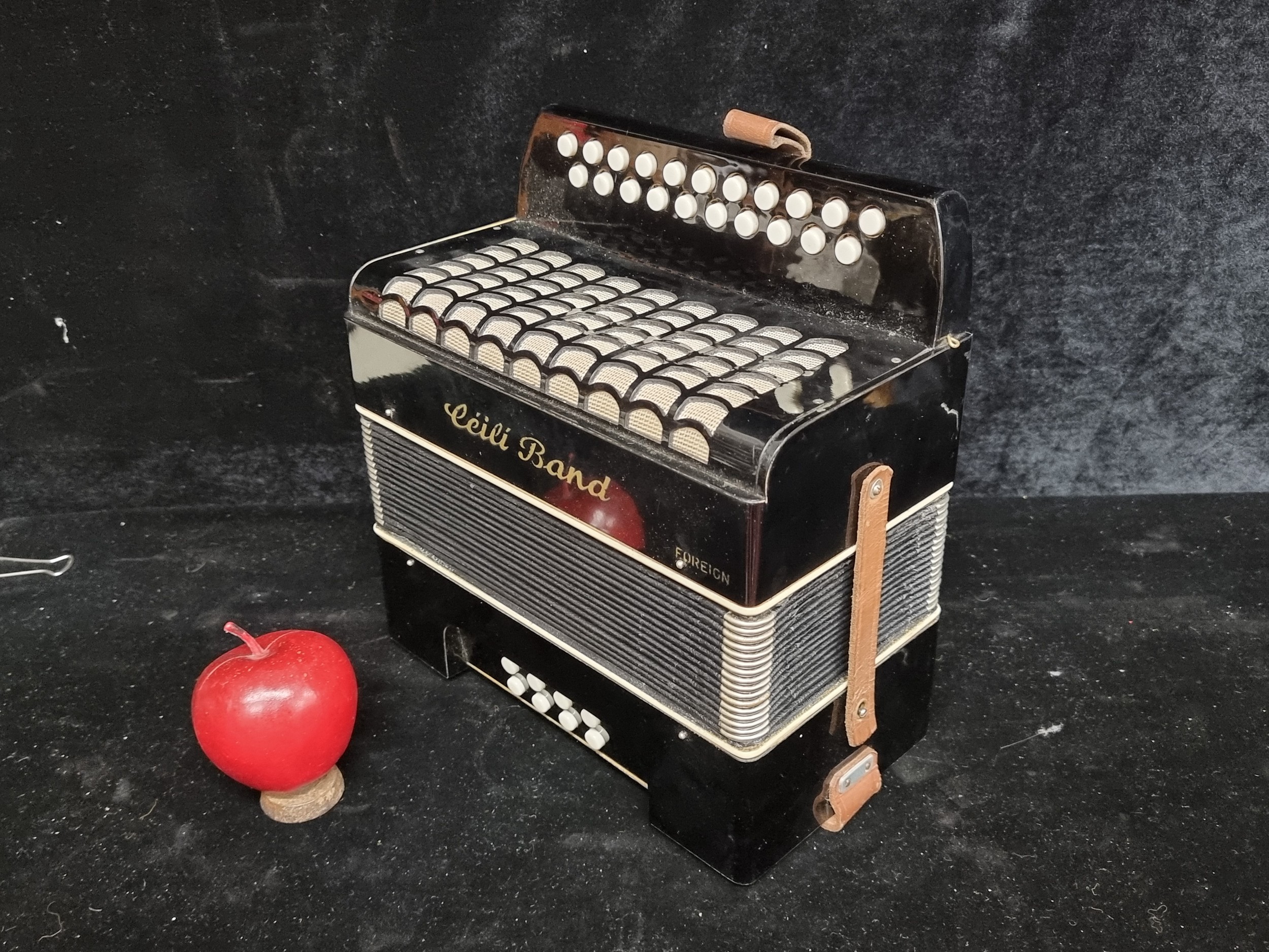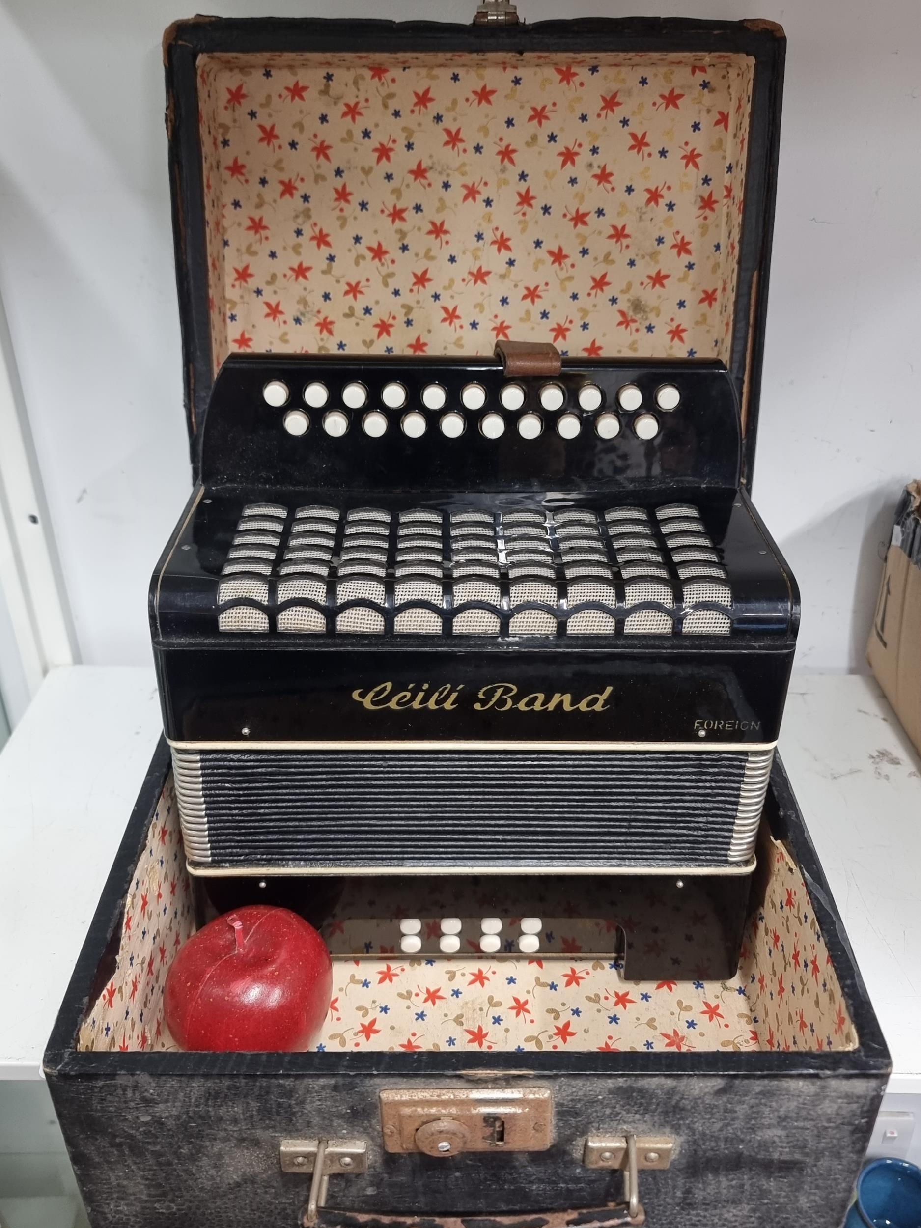 Star Lot : A wonderful vintage Ceili Band button accordion. Housed in a vintage hard shell carry case. Made in Germany in the 1950s/60s In VGC.