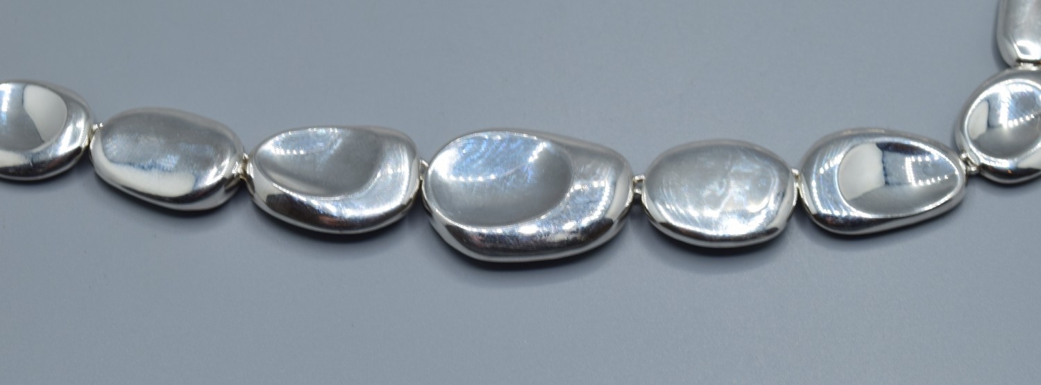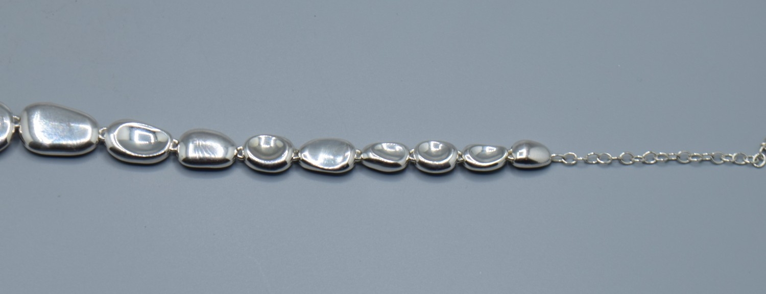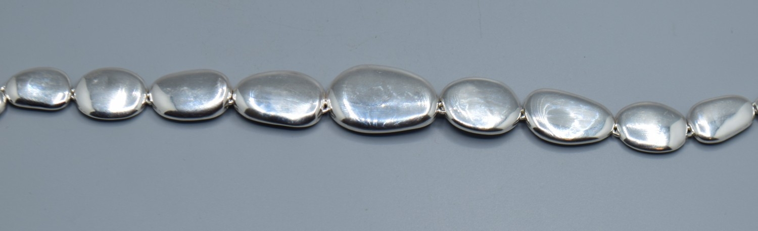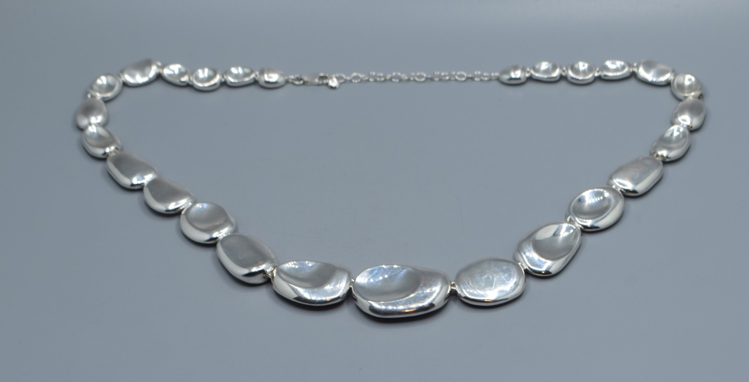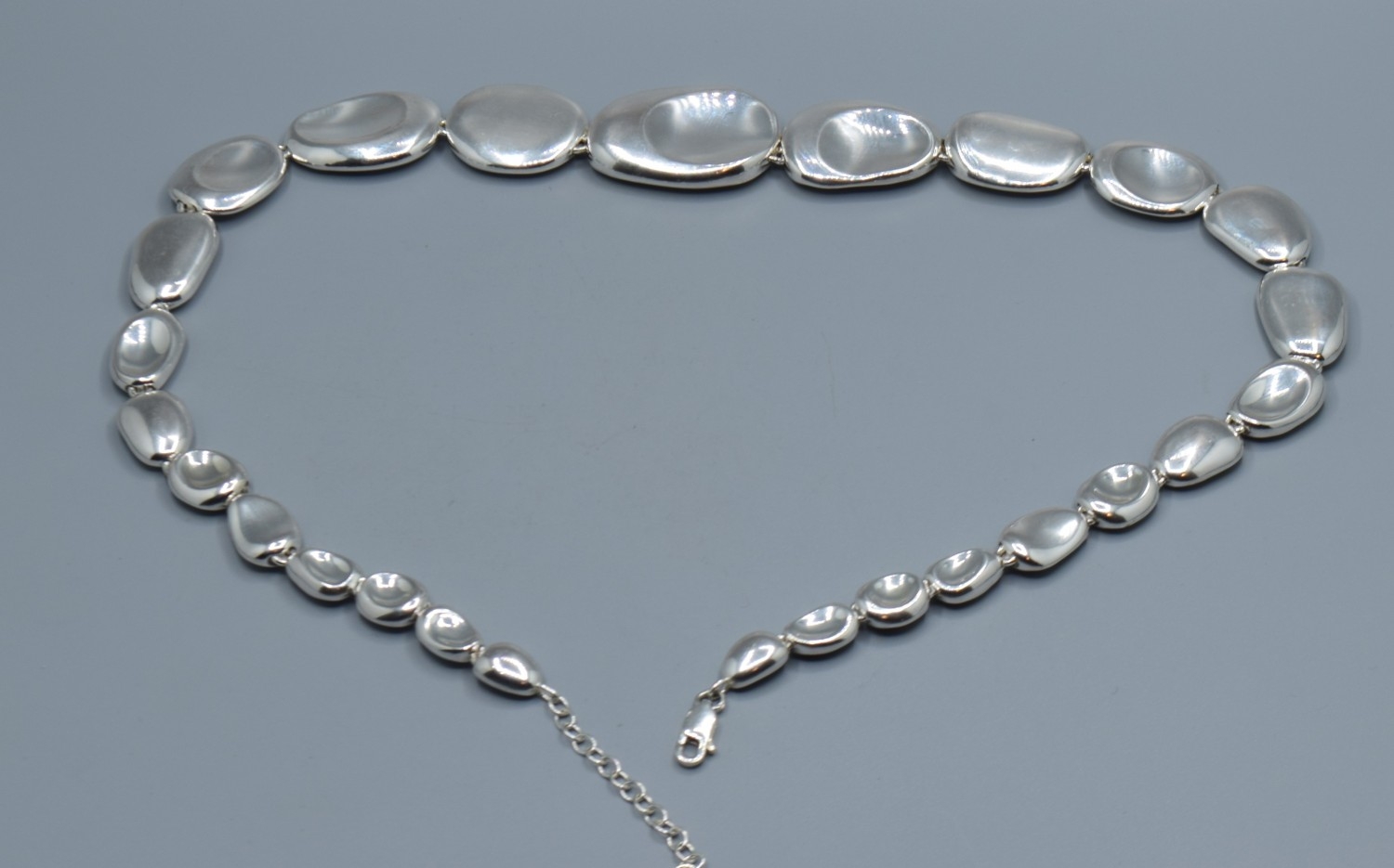 925 silver designer Pebble necklace having graduating size links and a lobster claw catch largest being 2.6cm x2.0cm. and total length 44cm, 48grams