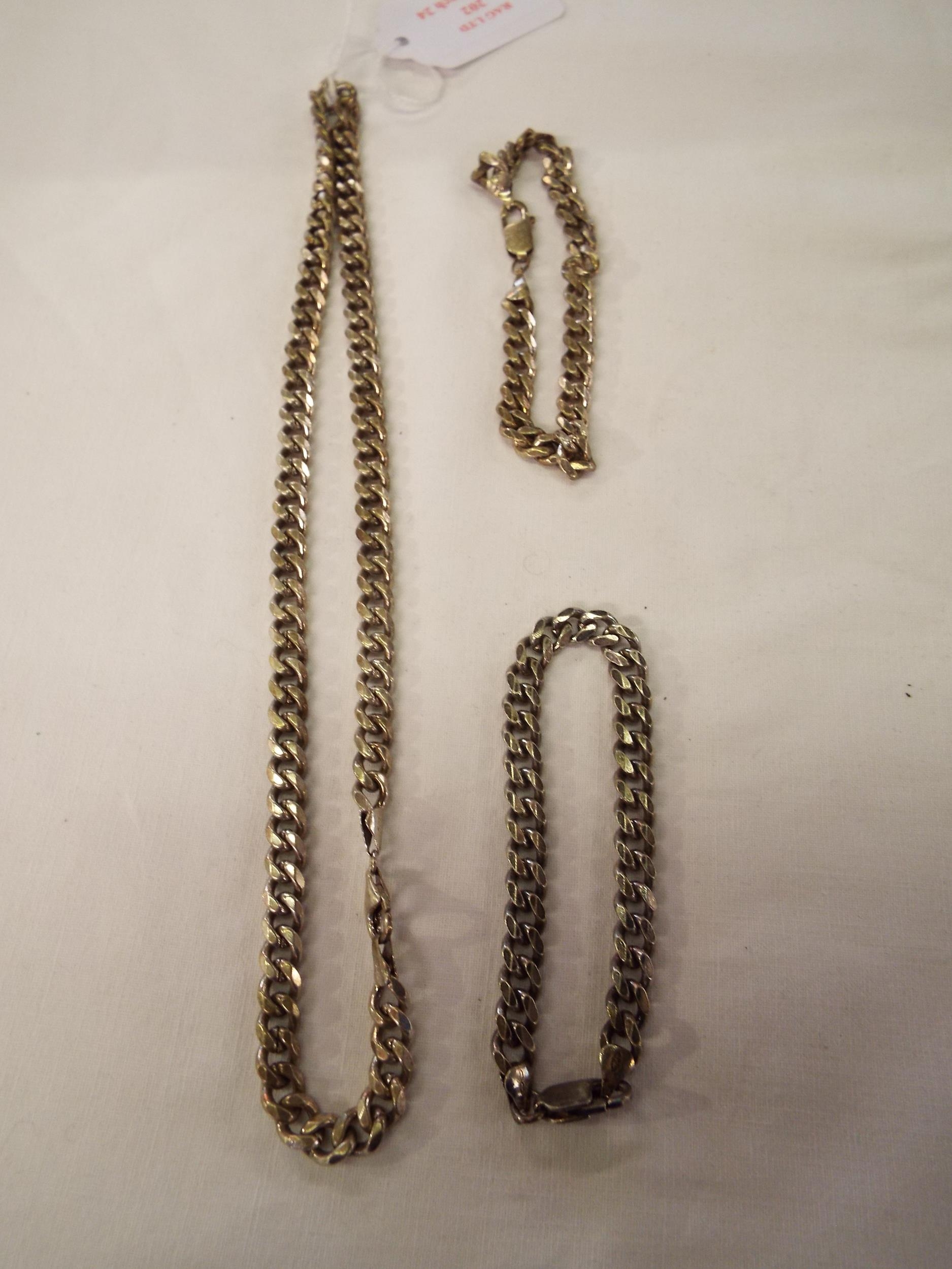 A silver curb link necklace and two bracelets total weight 3.36oz