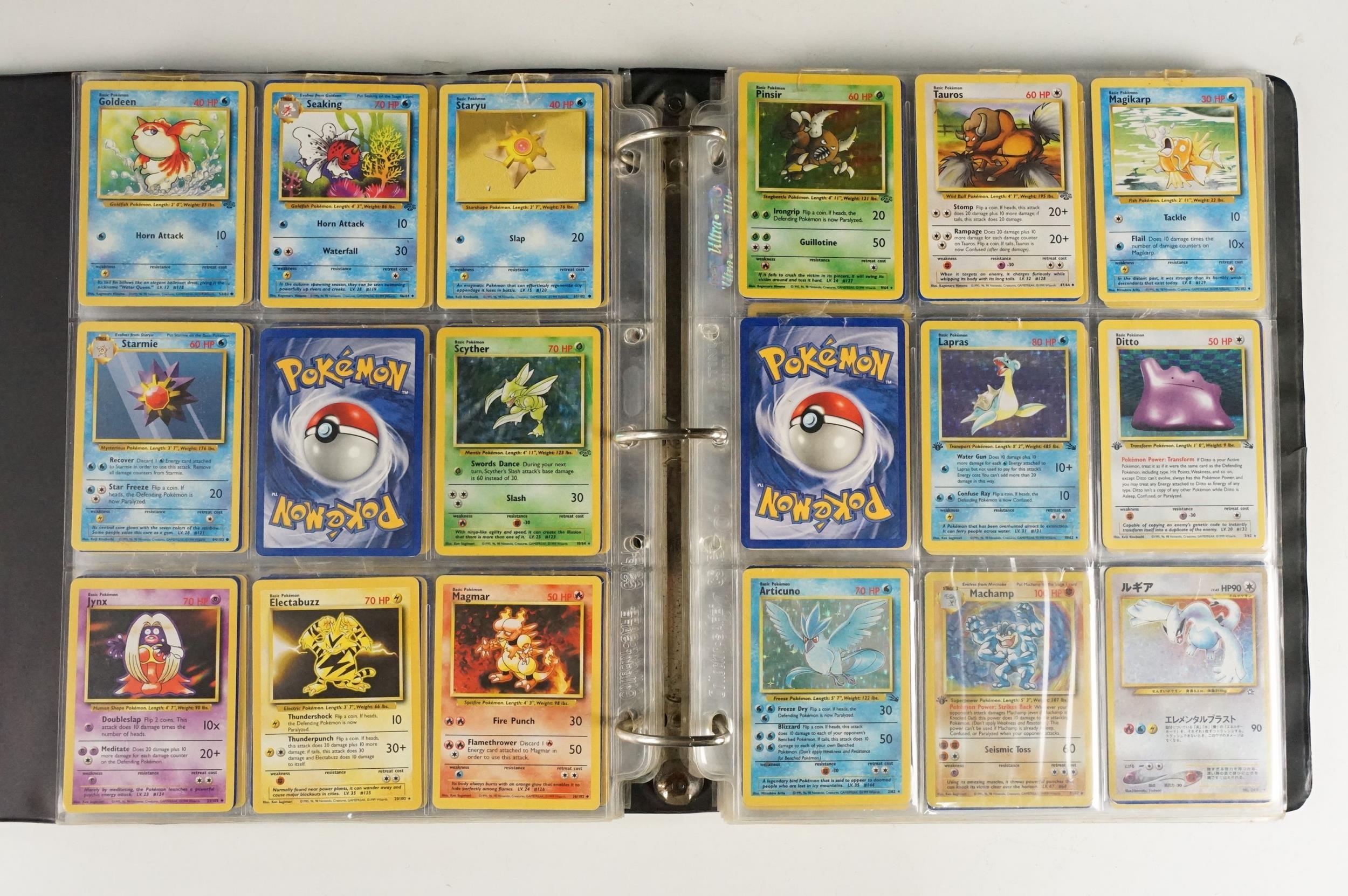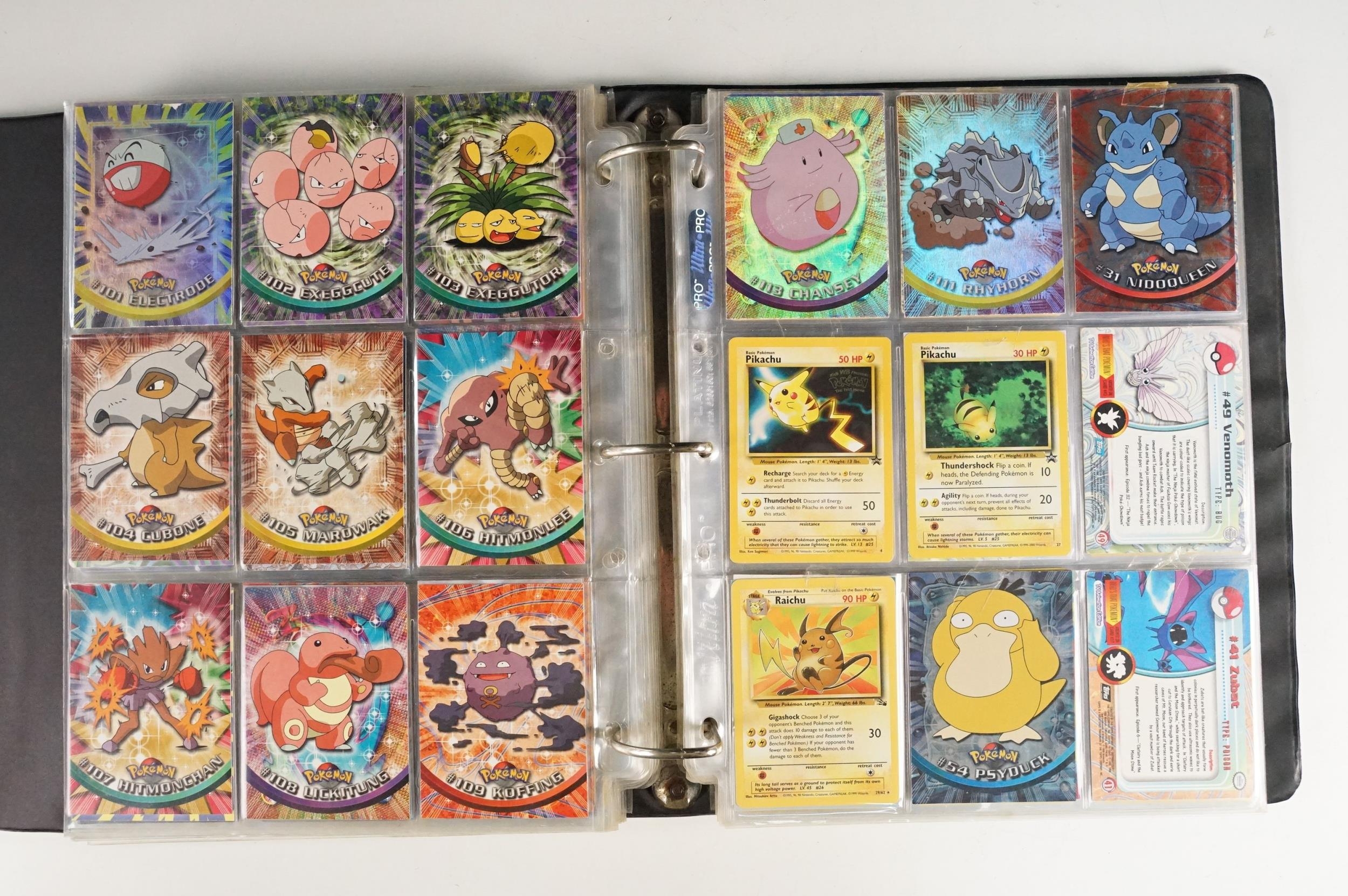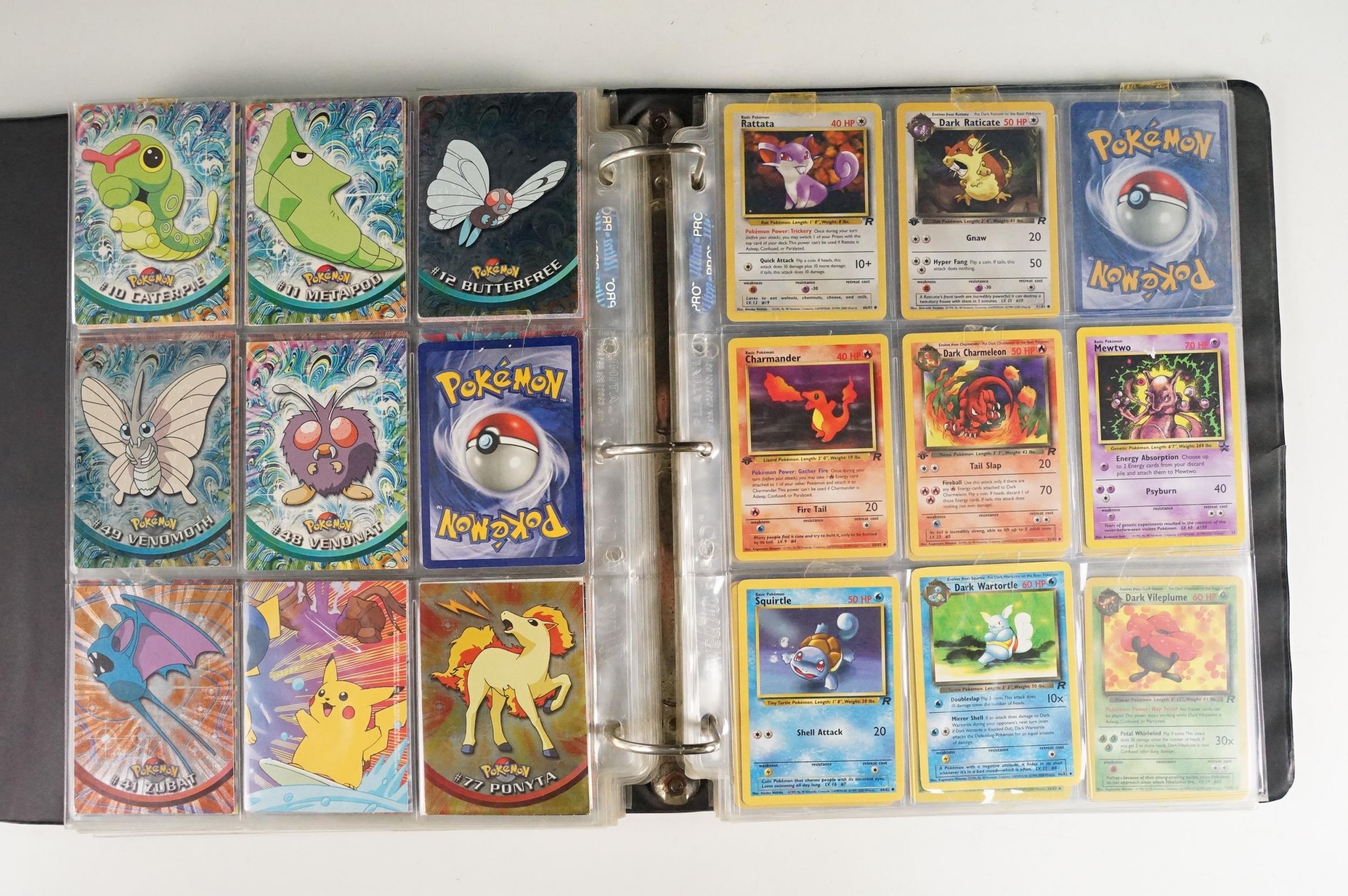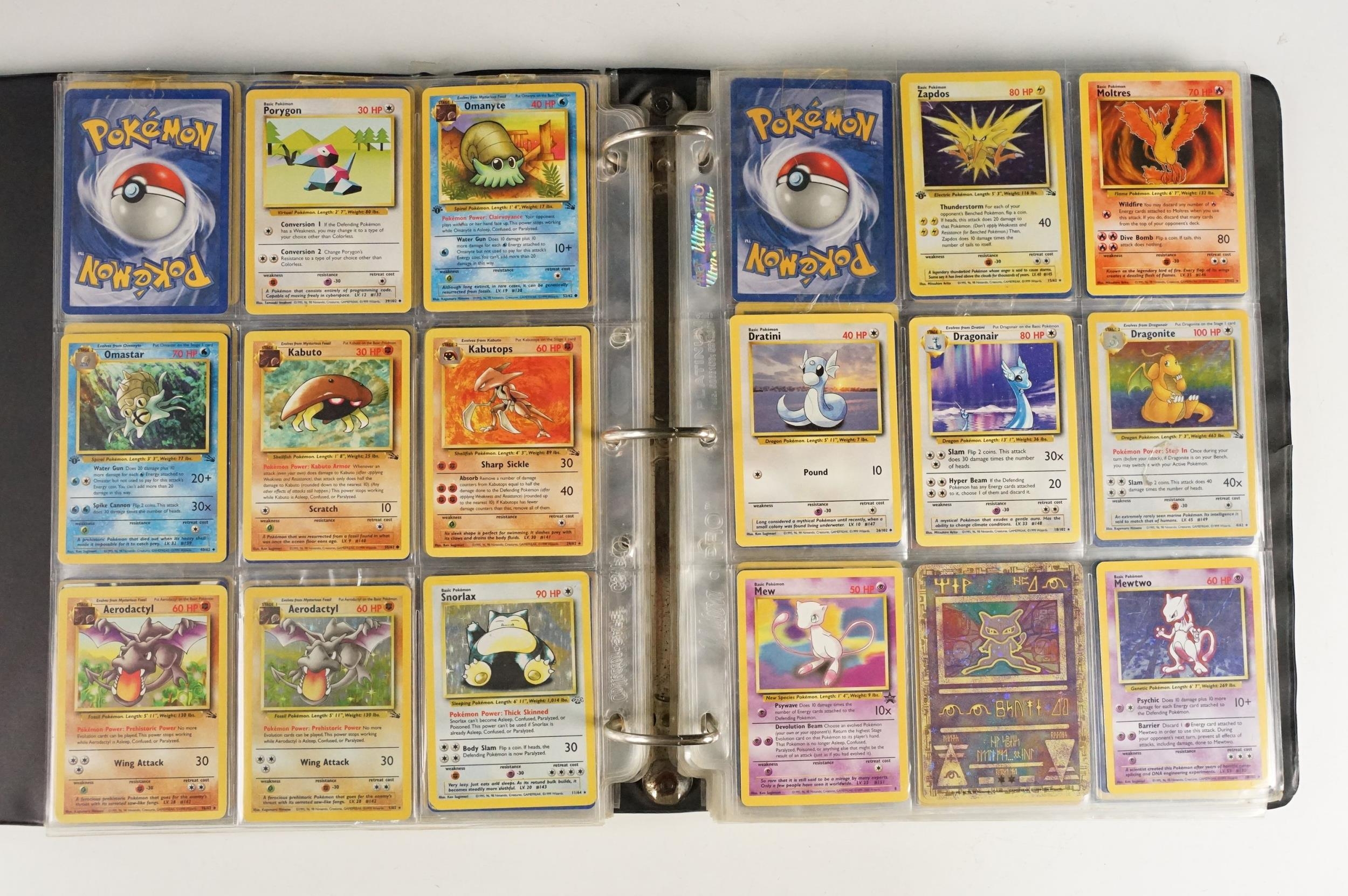 Pokemon Trading Cards - Collection of Pokémon cards featuring mainly Wizards Of The Coast to include Charizard 4/102 Base Rare Holo - Unlimited, Venusaur 15/102 Base Rare Holo - Unlimited, Blastoise 2/102 Base Rare Holo - Unlimited, Alakazam 1/102 Base Rare Holo - Unlimited, Lapras 10/62 Fossil Rare Holo - 1st Edition, Zapdos 15/62 Fossil Rare Holo - 1st Edition, etc with a collection of Topps Pokemon cards