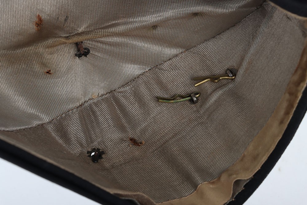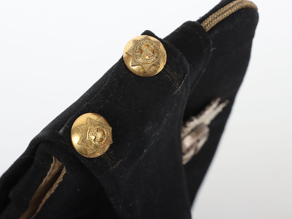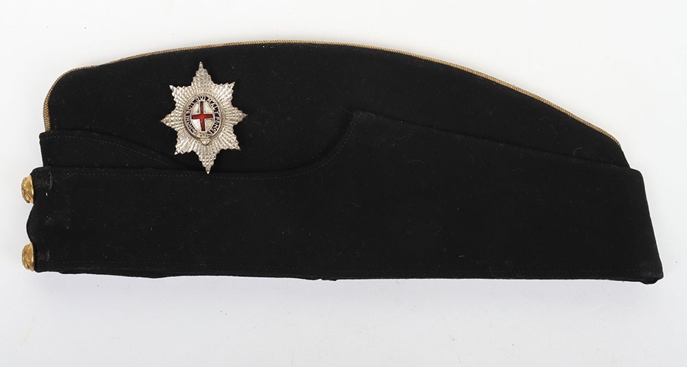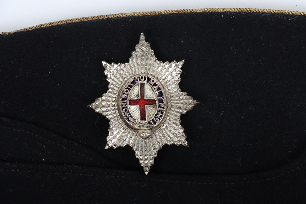 Coldstream Guards Field Service Cap, of dark blue cloth with gilt wire braid to the crown. Regimental garter buttons to the front and silver and enamel officers cap star badge. Officers cloth lining to the interior of the cap. Generally a good example.