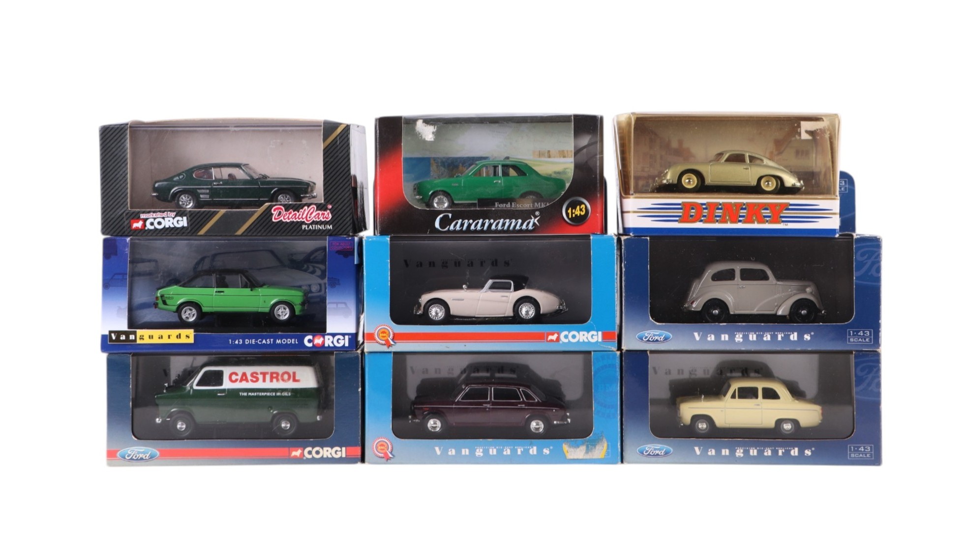 A collection of Vanguard Limited Edition cars and other Corgi commercials and cars, including Vauxhall Viva, Morris Minor Traveller and others, all boxed.