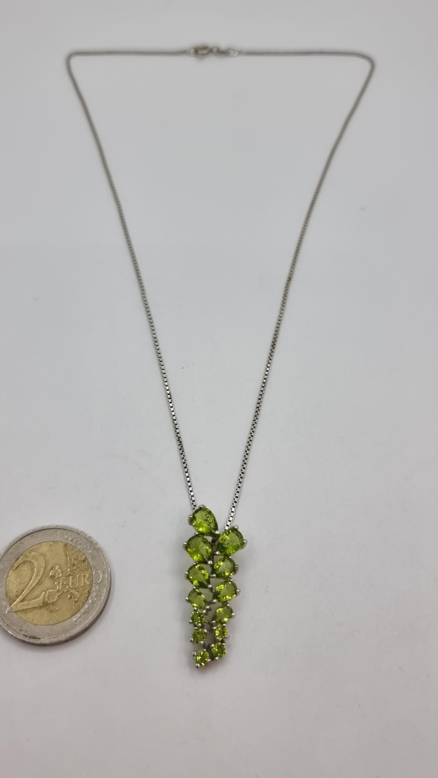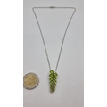 An attractive sterling silver (stamped 925) leaf design peridot pendant and chain. Length of chain 46cm.