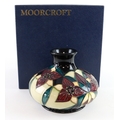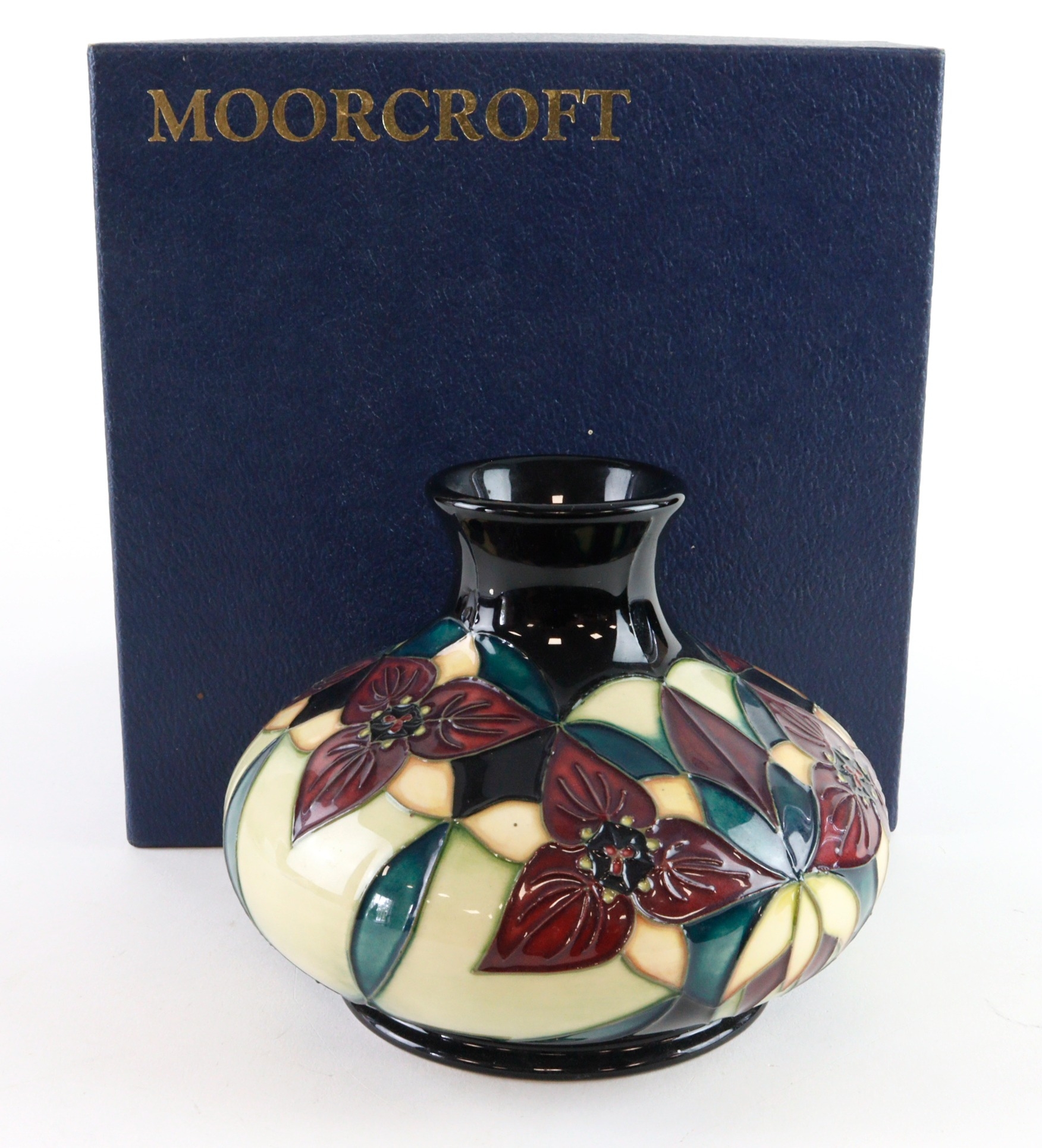 Moorcroft 'Trillium' pattern squat vase, dated 2000, makers marks, height 10cm approx., contained in a Moorcroft box