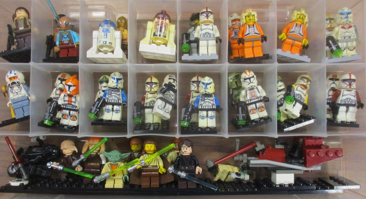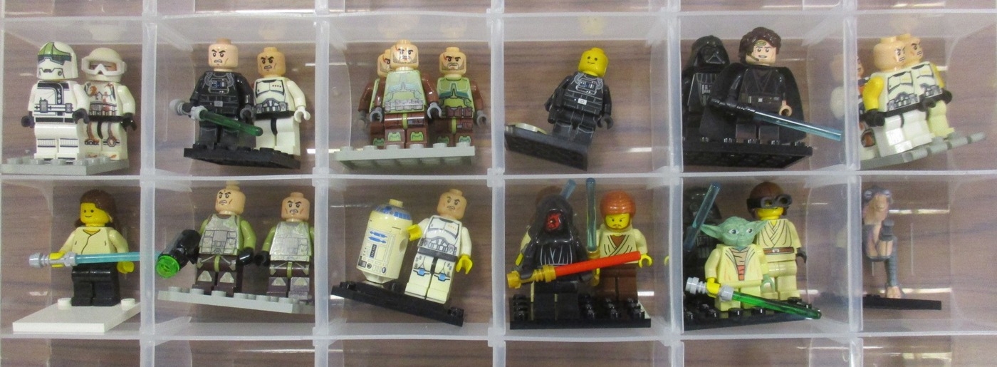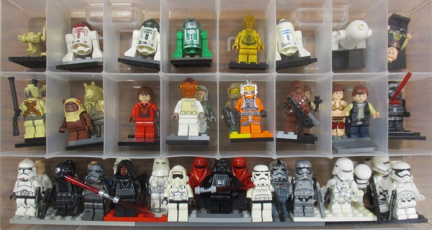 Star Wars. Lego. Collection of minifigures in clear plastic cases, generally near mint to mint, includes ranges of Prequel Trilogy, Original Trilogy, Sequel Trilogy, etc. Qty 100+ (½B)