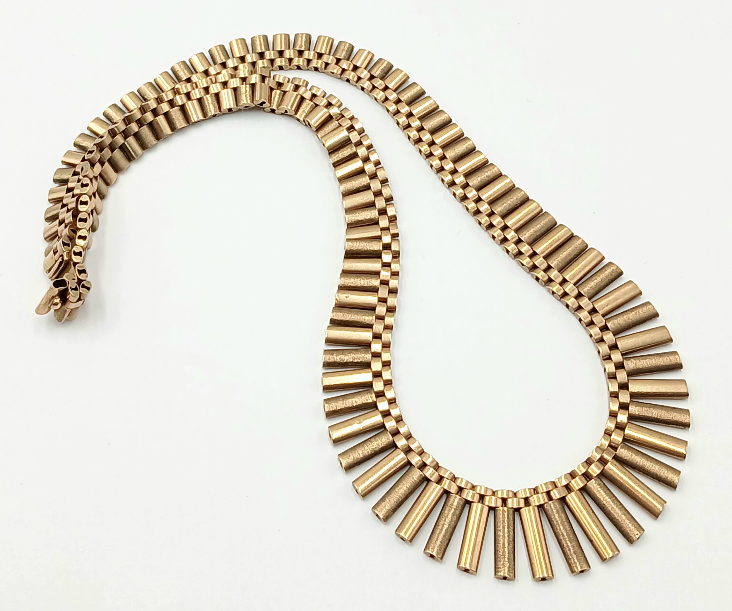 A VERY CHIC 9K GOLD GRADUATED CHOKER NECKLACE. 44.9gms 78cms