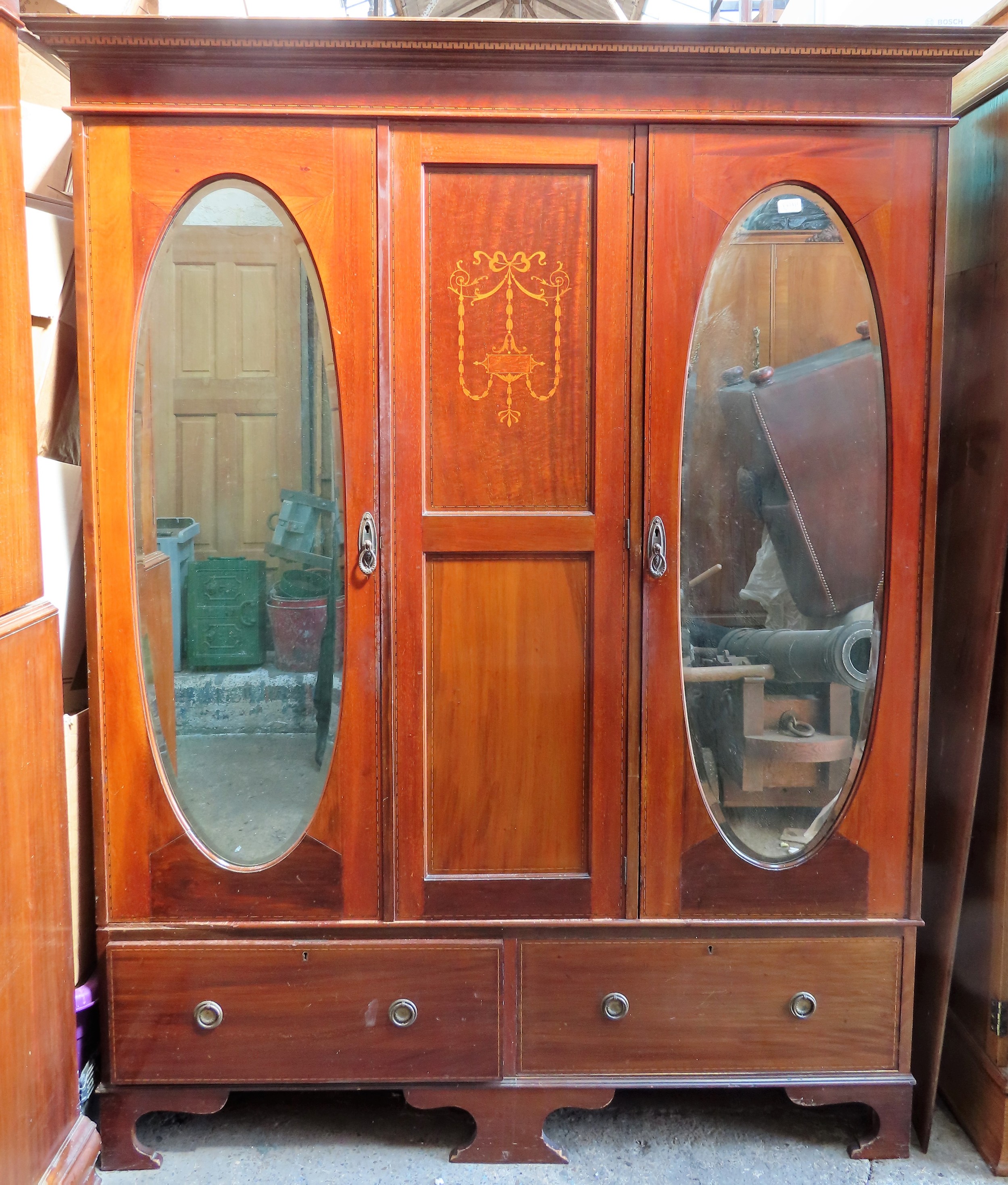 Victorian/Edwardian inlaid mahogany two door mirrored wardrobe. Approx. 201cm H x 161cm W x 56cm D