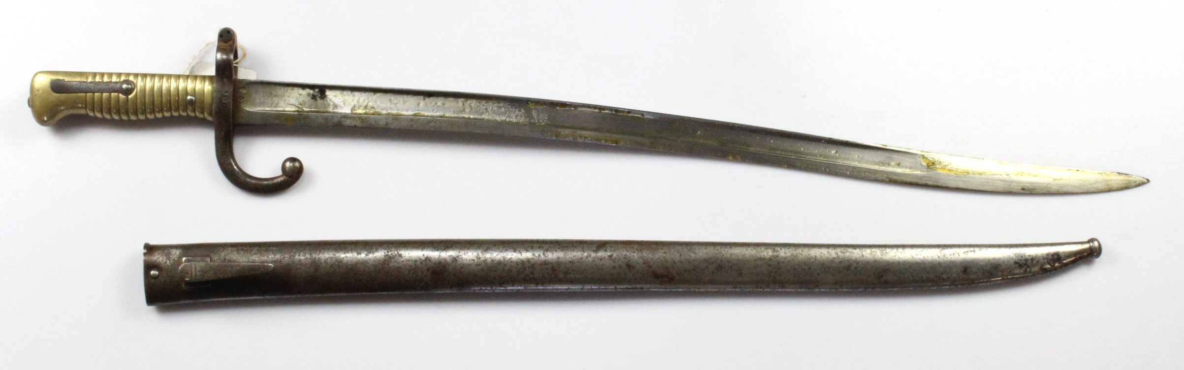 French model 1866 Sabre bayonet with scarce German modified scabbard.