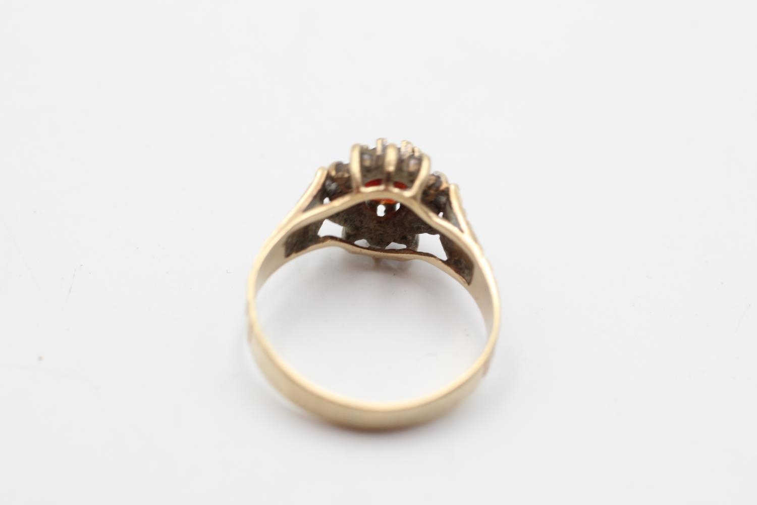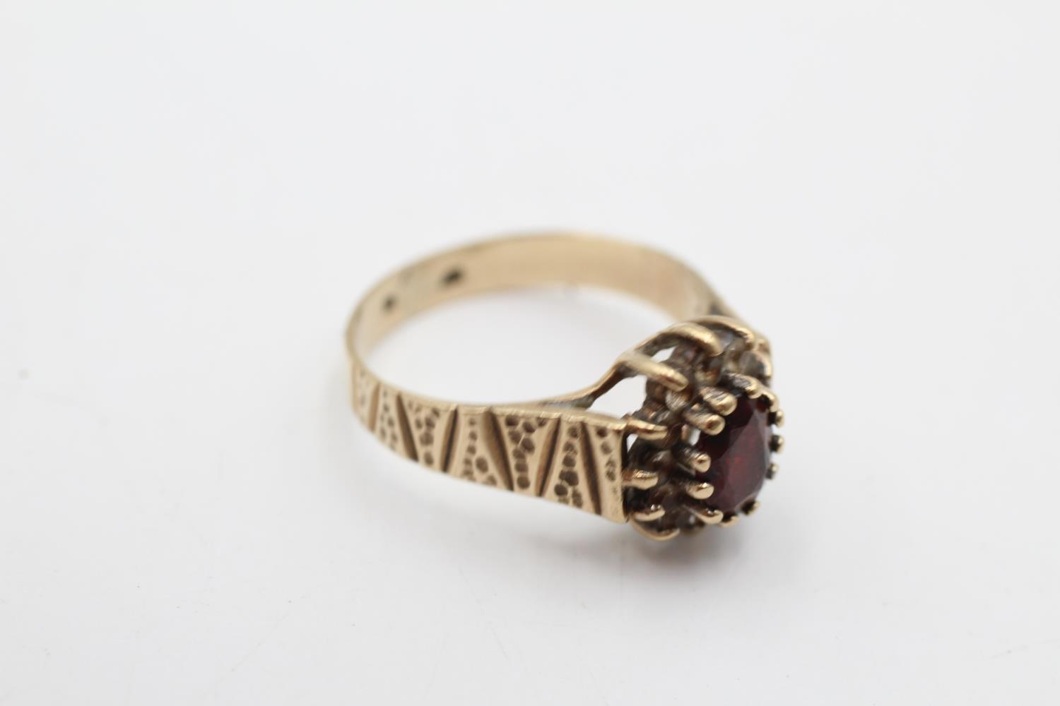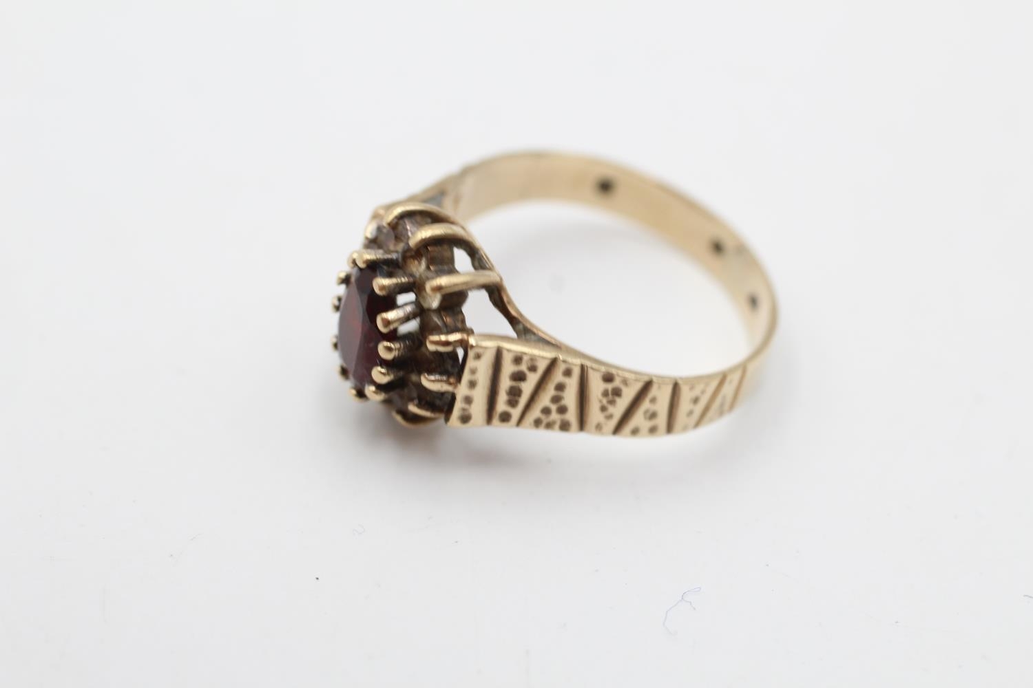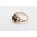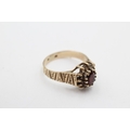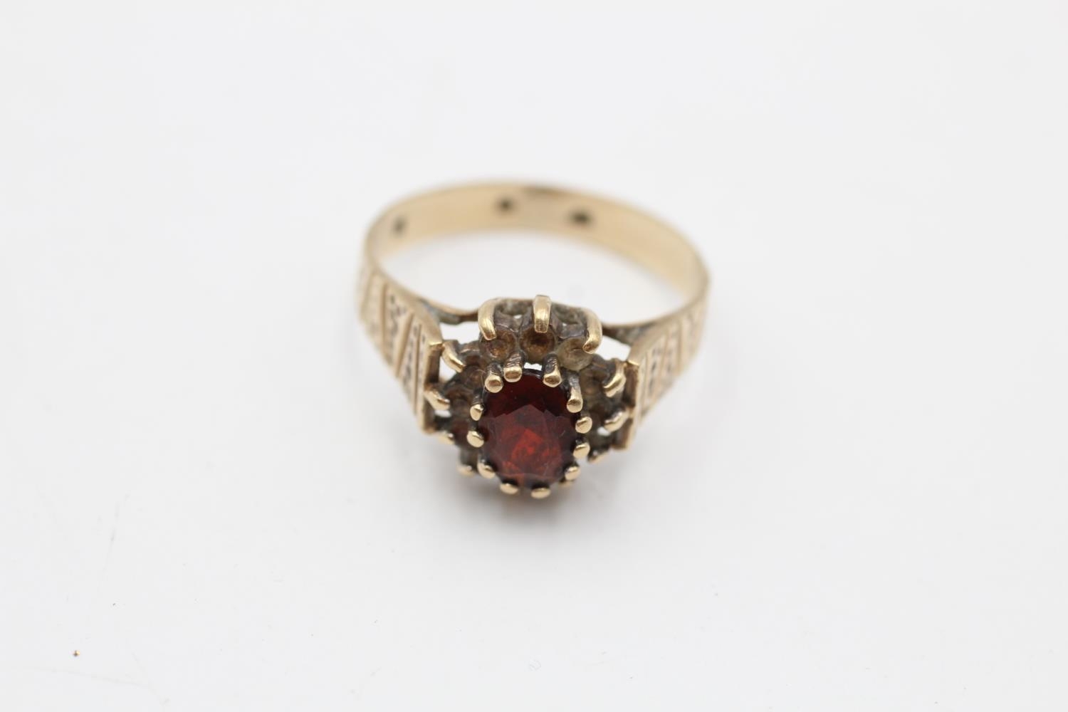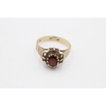 9ct gold vintage garnet and rock quartz halo ring (2.6g) size M
