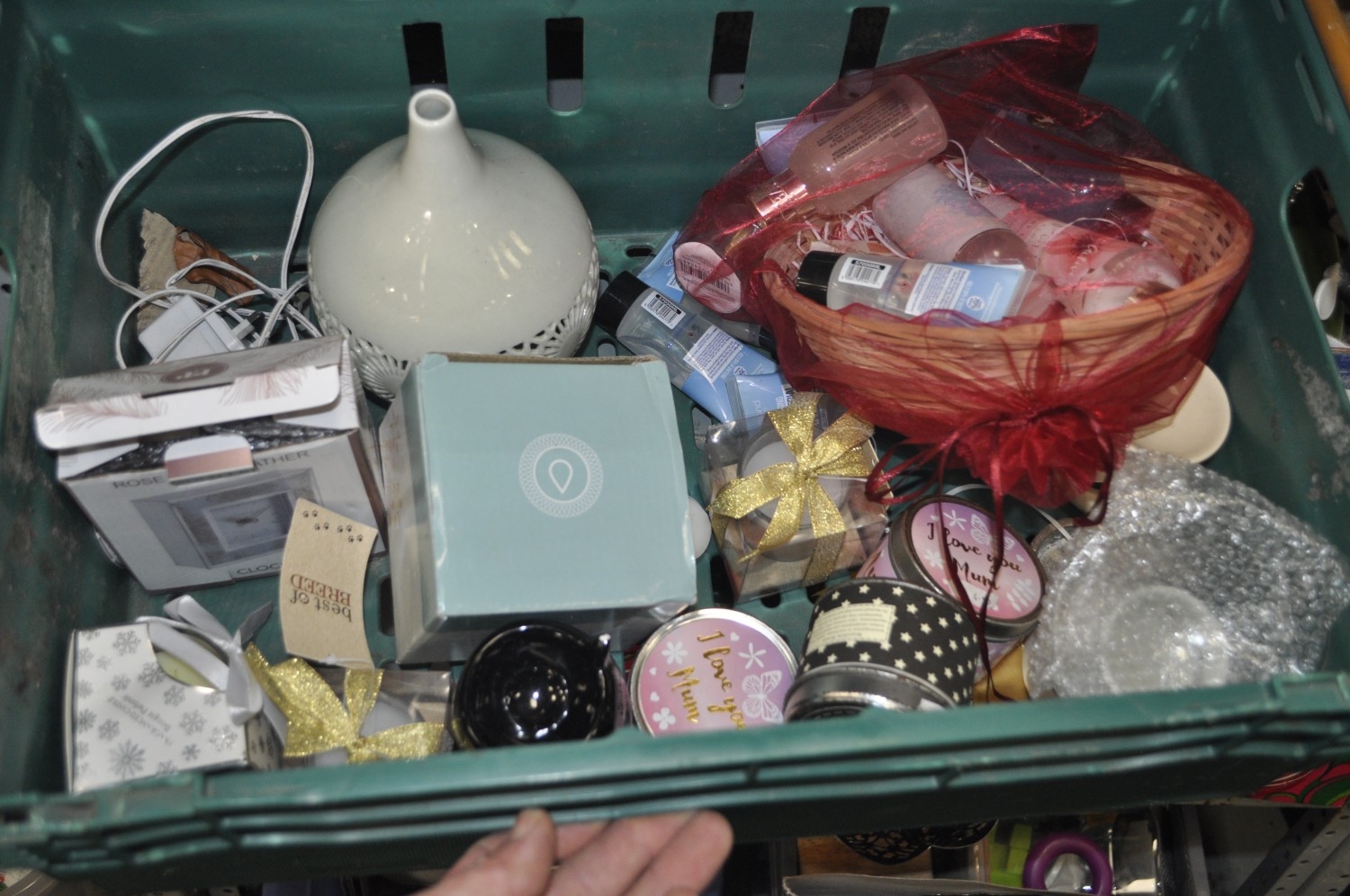 A LARGE BOX NEW ITEMS INC LEONARDO ROSE GOLD FEATHER CLOCK, DIFFUSERS, HAND SANITISERS, ESSENTIAL OIL BURNERS, CANDLES ETC. LOTS OF LOVELY THINGS TO HELP WITH A NICE RELAXING BATH