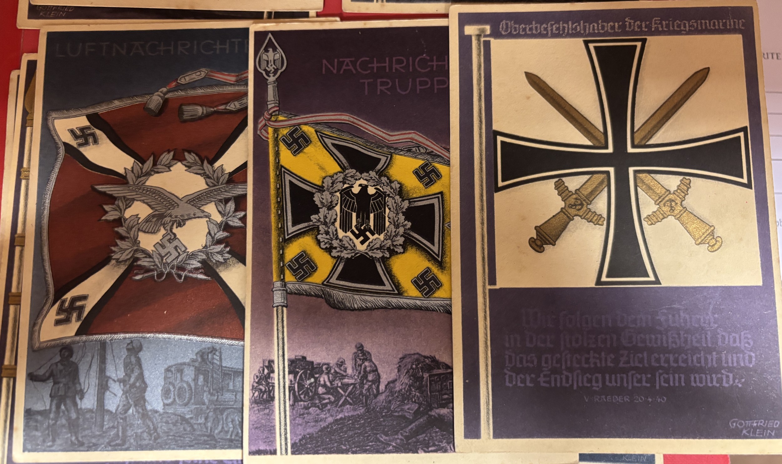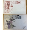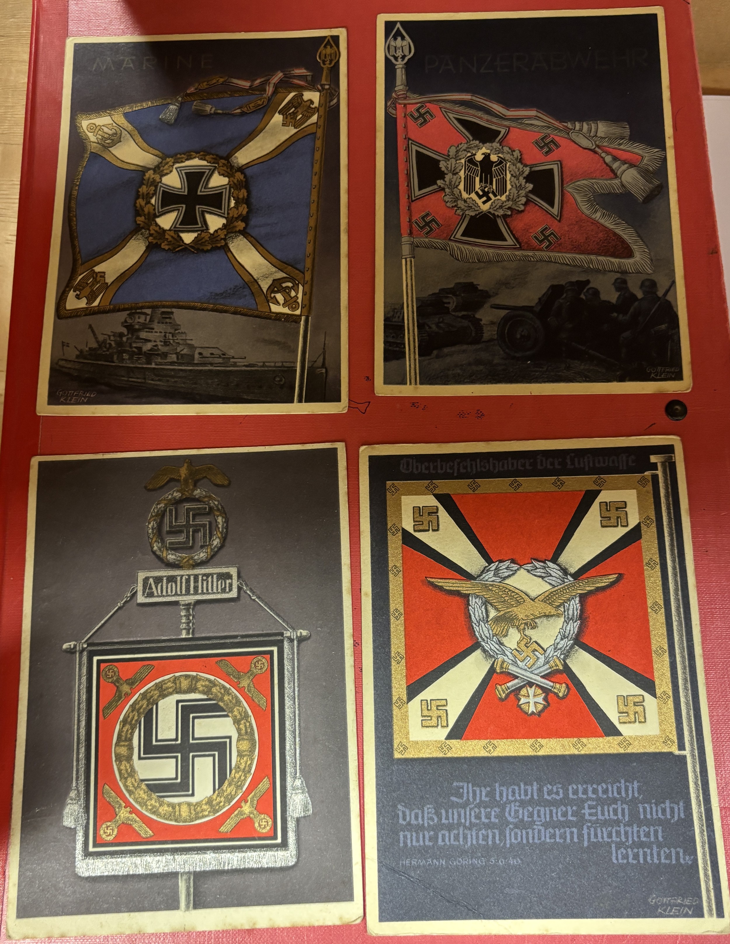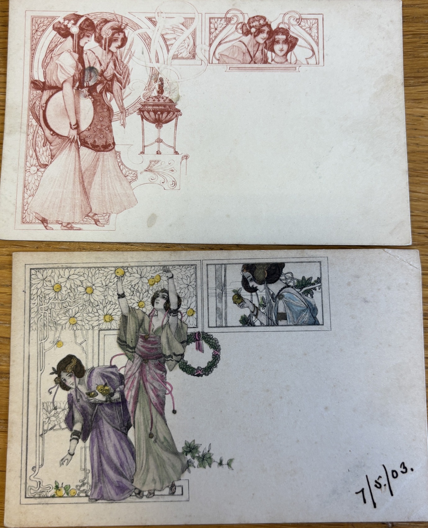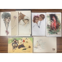 Subjects. Misc. coln. of mostly vintage cards loose in shoeboxes, with artist drawn noting Gottfried Klein cards, ptd. and R.P's, incl. advertisements, aeroplanes, art nouveau, exhibtions, h.t.l., theatrical, etc. Qty. approx. 3000+. (2B)