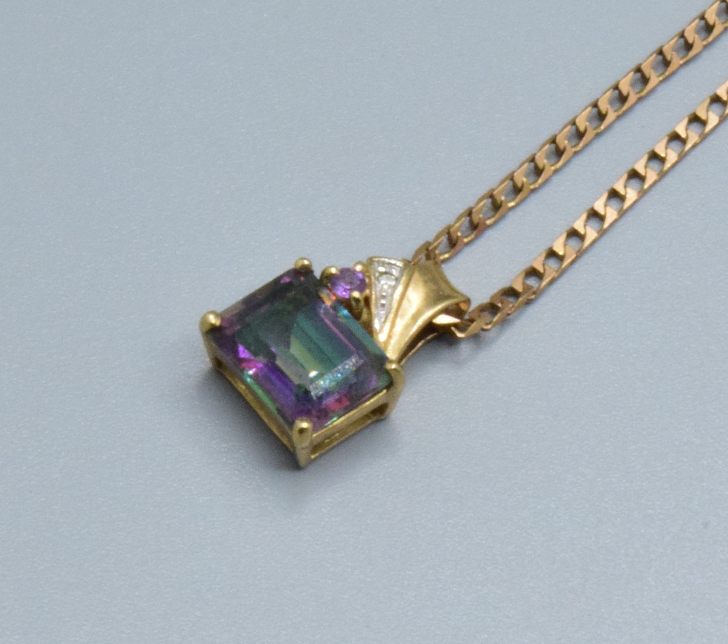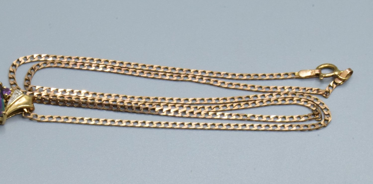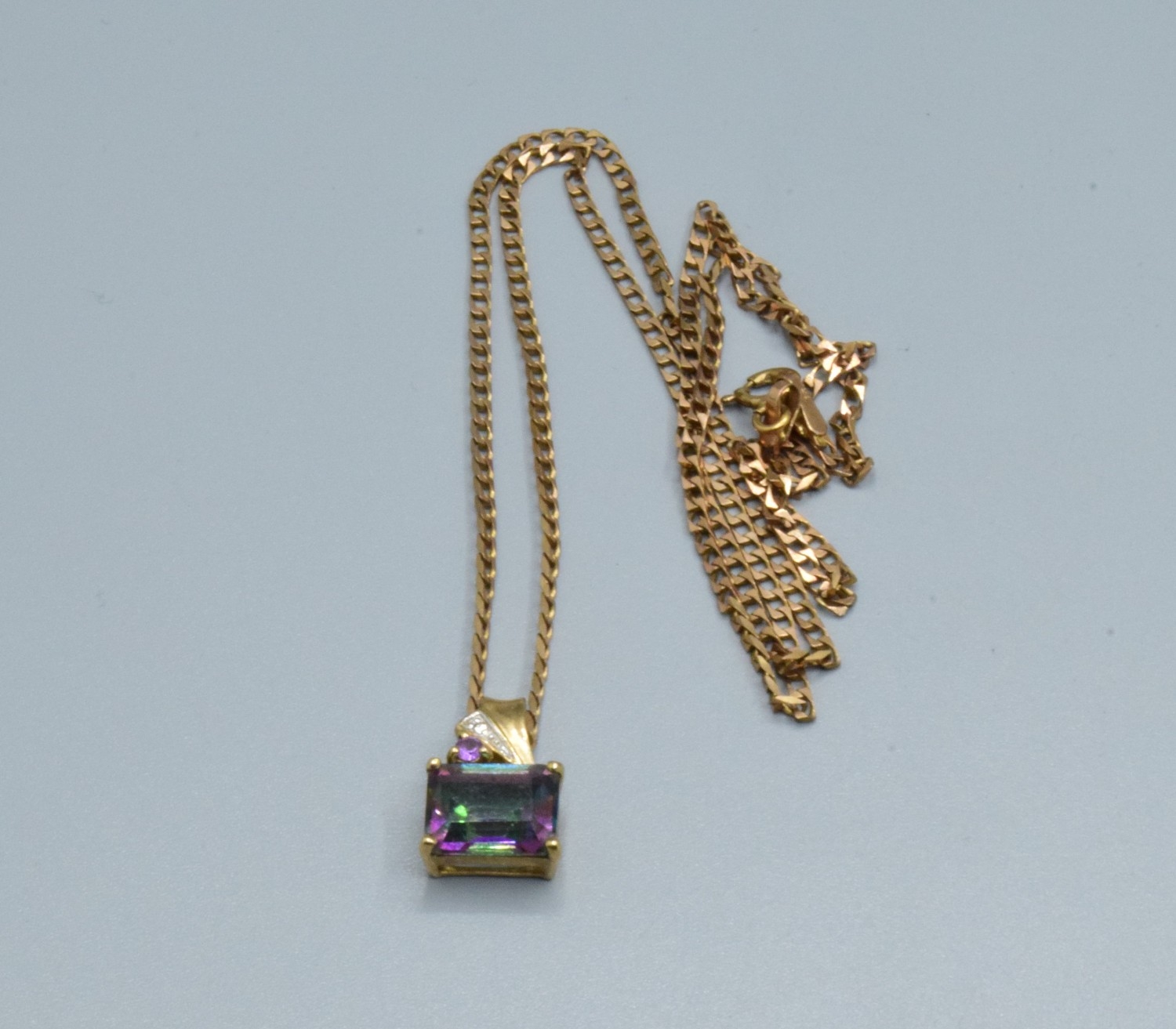 9ct gold Mystic Topaz and & Diamond pendant 14x9mm held on a 9ct gold neck chain 44cm long 4.1grams