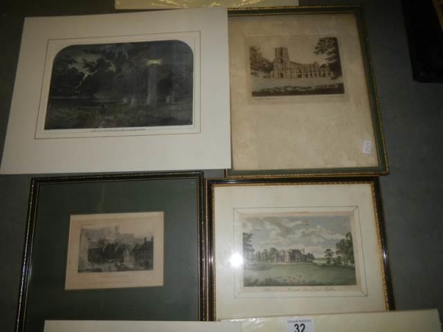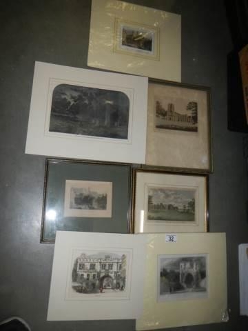 3 framed & glazed engravings and four unframed examples.