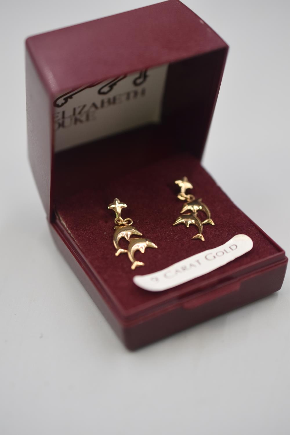 Pair of Gold 375 (9ct) Dolphin Earrings Complete with Case