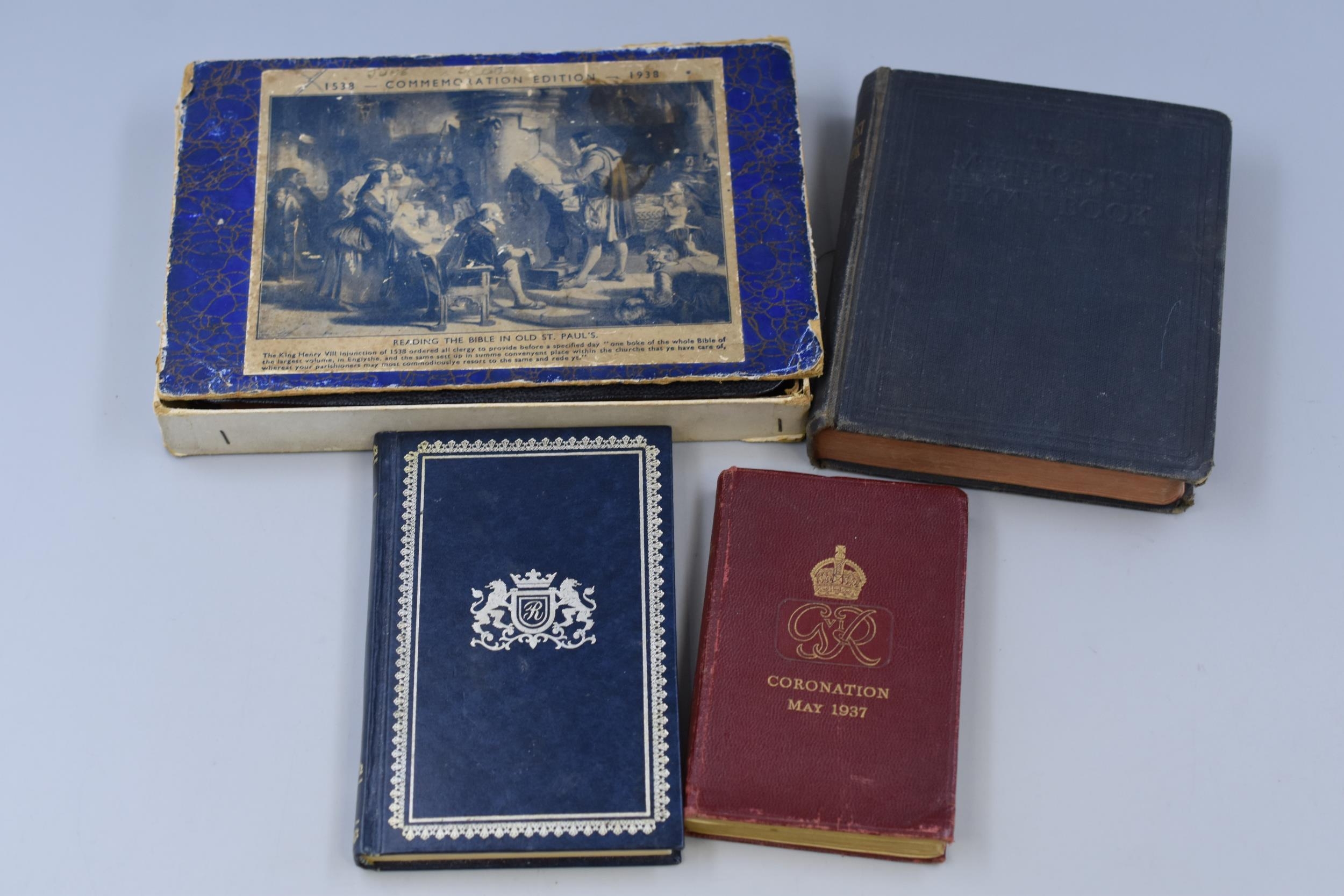 A selection of vintage books to include: May Coronation 1937, The Holy Bible Commemoration Edition 1538-1938, The Methodist Hymn Book and History of Hall-marks