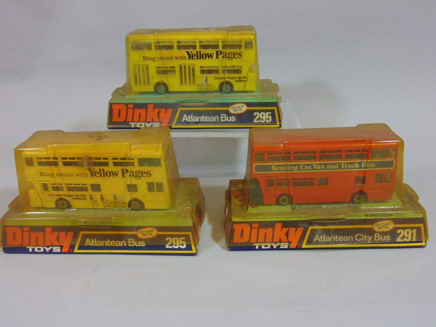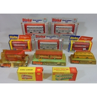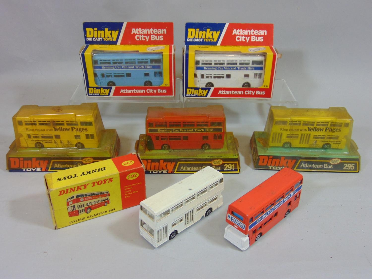 6 Dinky Atlantean buses in original boxes (3x291, 1x292 and 2 x 295) and 2 unboxed Atlantean buses