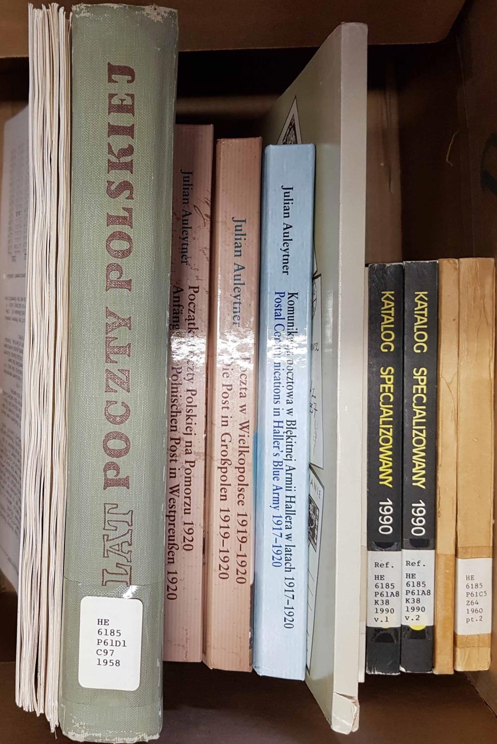 POLAND: One box containing miscellaneous items. Noted: 400 Lat Poczty Polskiej and three handbooks by Auleytner. (10)Cross Reference: POLAND
