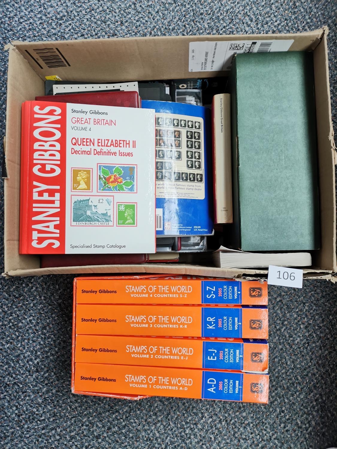 MIXED WORLD. CATALGUES ETC. Range of SG catalogues incl. 2005 SOW A-Z various others a box of Prinz mounts etc. Buyer must collect. (qty)