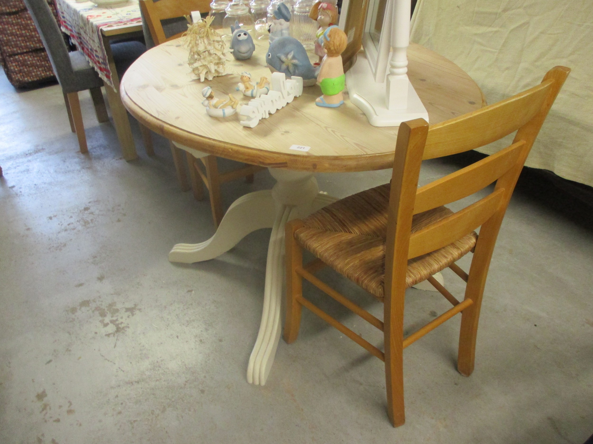 Oval Single Pedestal Dining Table (warped top) and Two Chairs