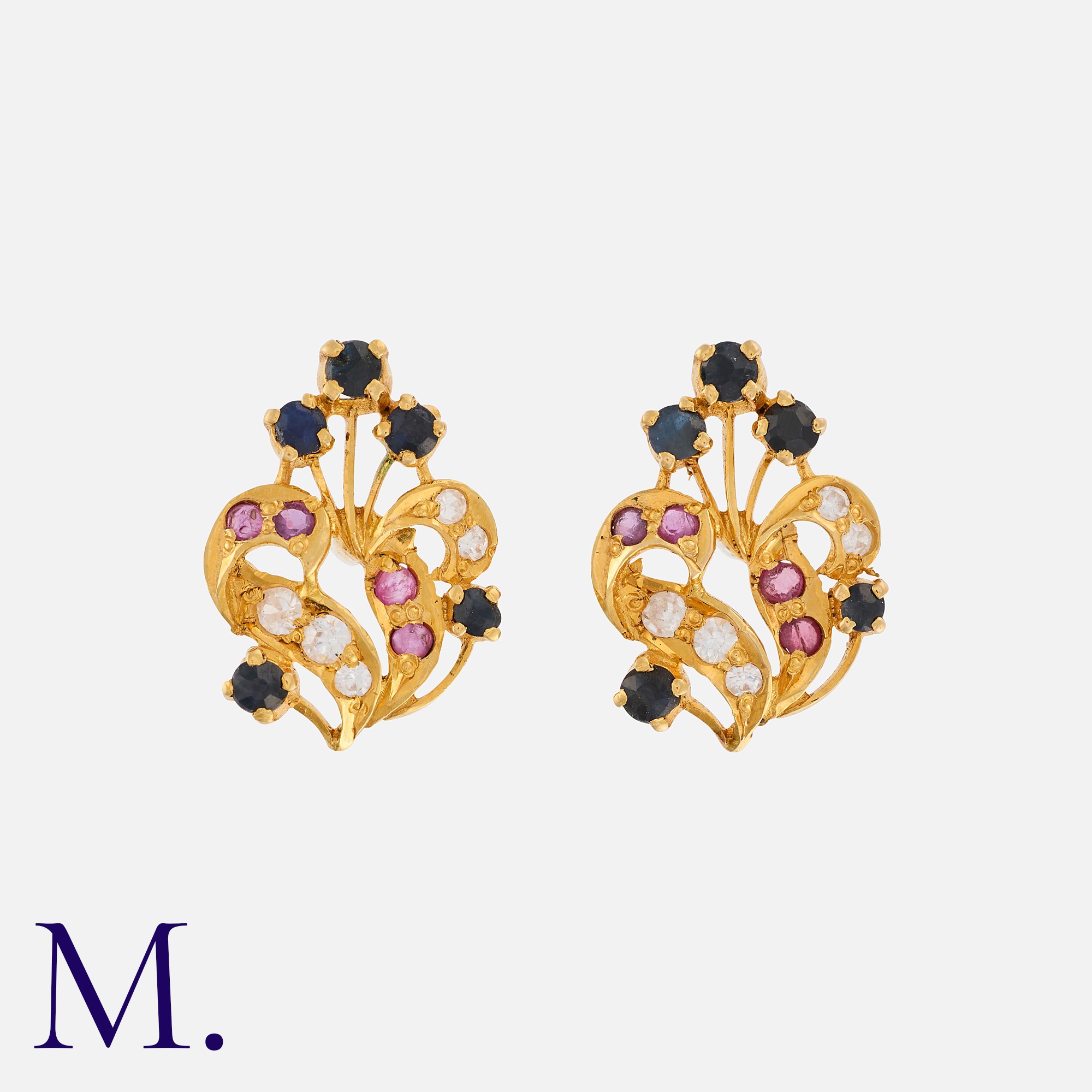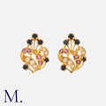 A Pair Of Gem-Set Earrings of foliate design.Size: 1.5cmWeight: 3.6g.