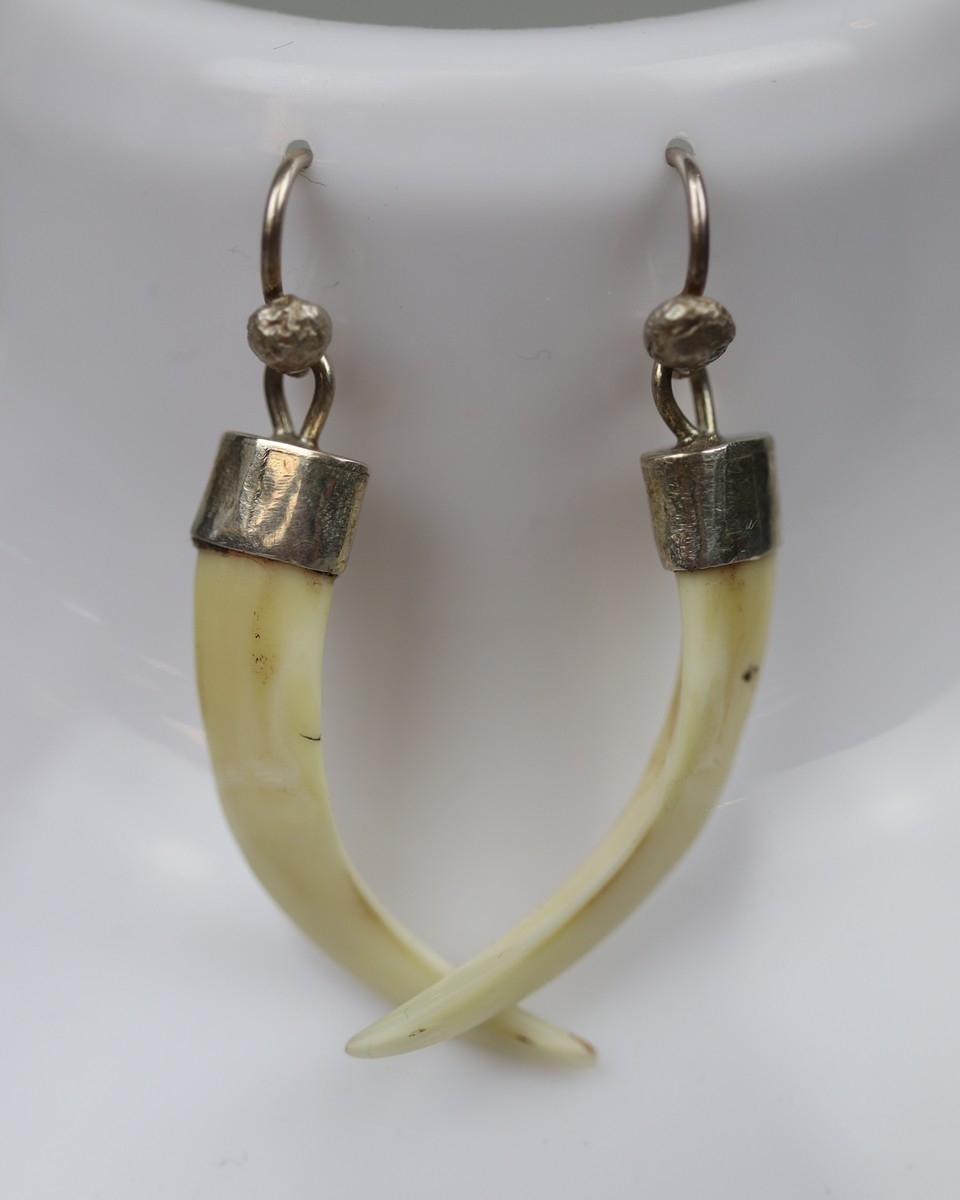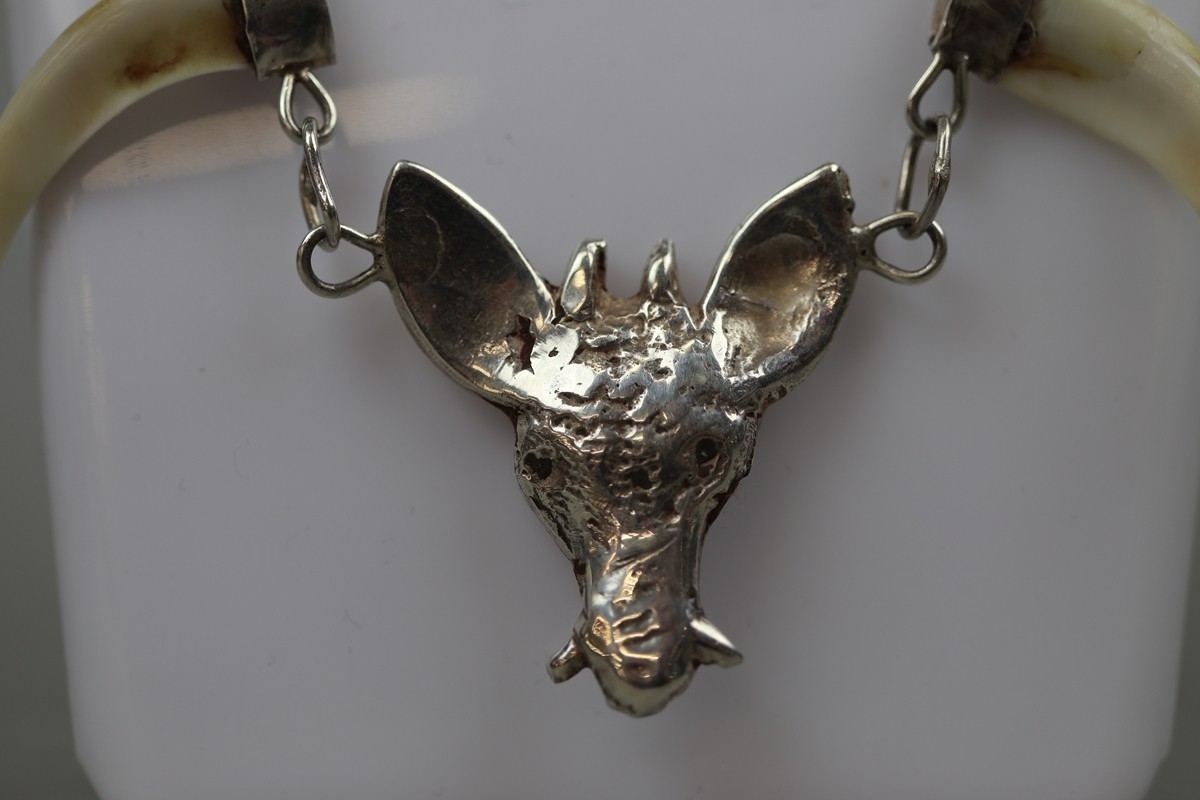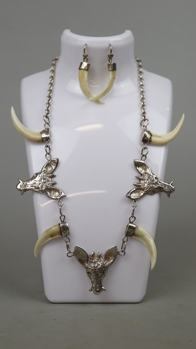 Bespoke silver and muntjac deer tooth jewellery set comprising of necklace and earrings