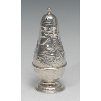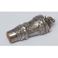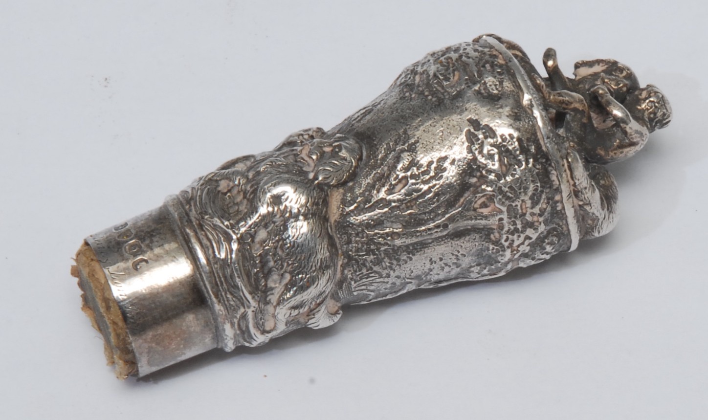A Victorian silver walking stick or riding crop handle, cast with a boy and a dog in a landscape, 6.5cm long, Swaine & Adeney, London 1851