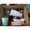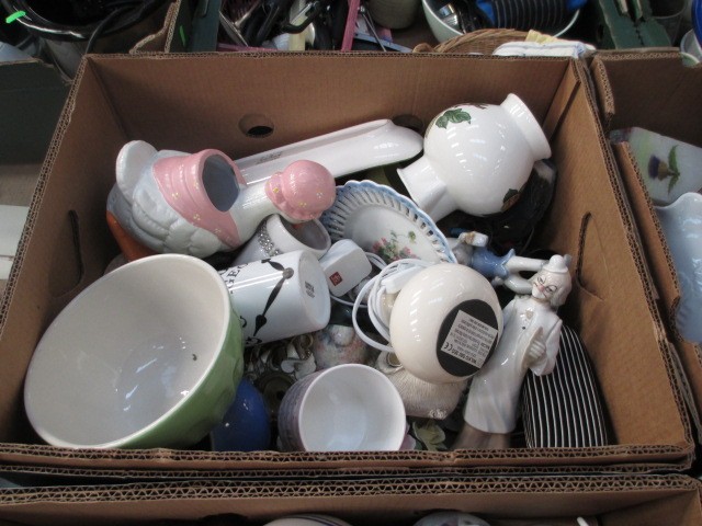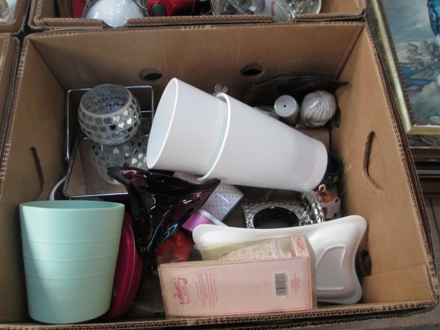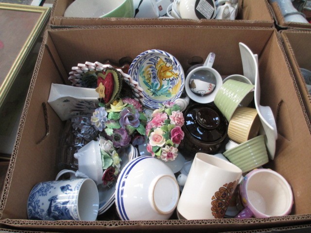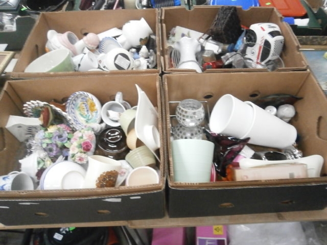 Four boxes inc ornaments, vases, mugs, tealight holders, etc