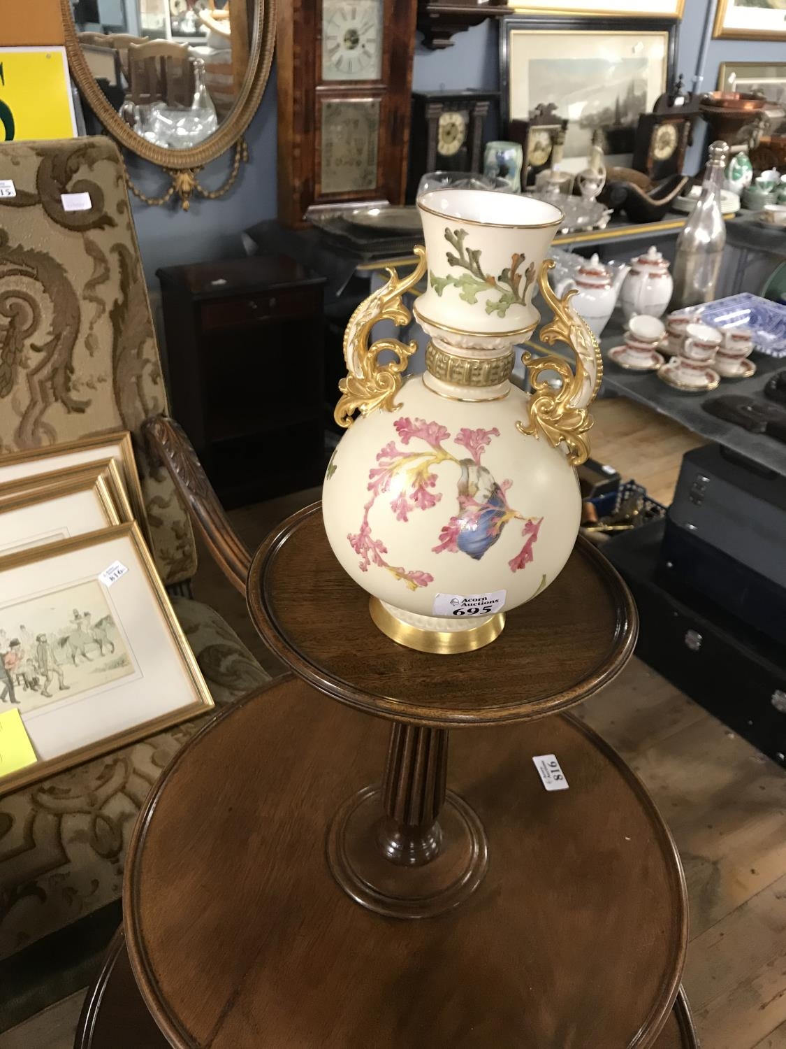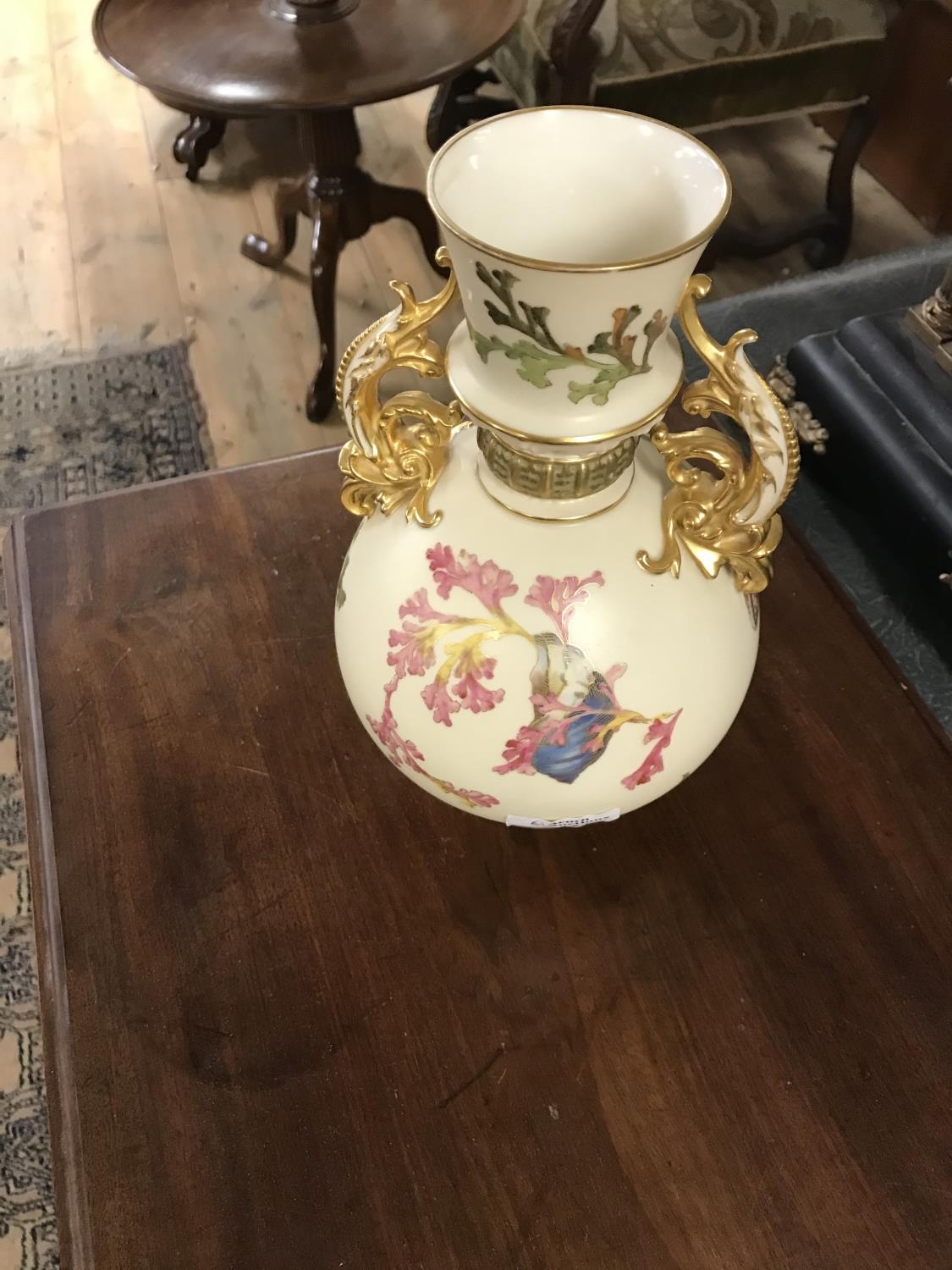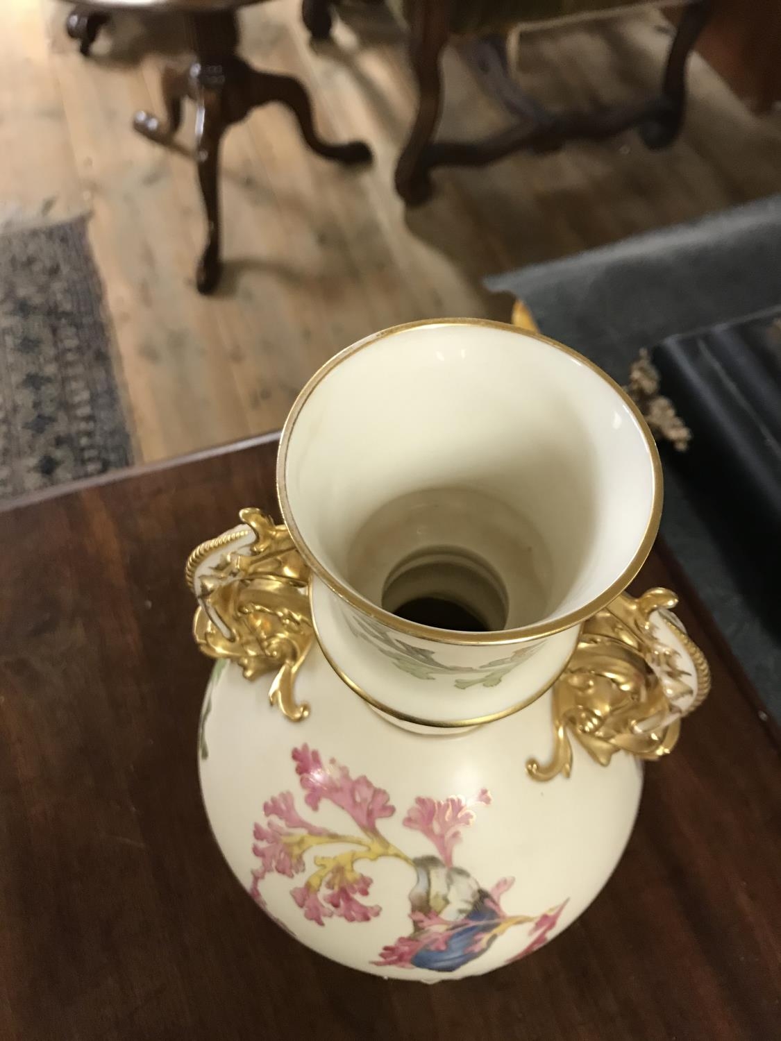 Stunning Royal Worcester blush ivory double handled vase C1890