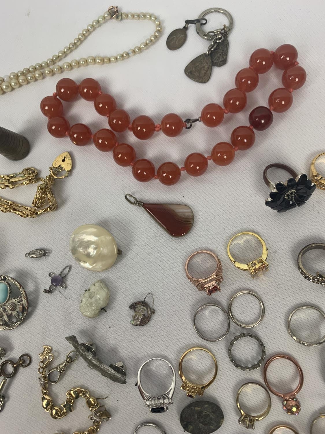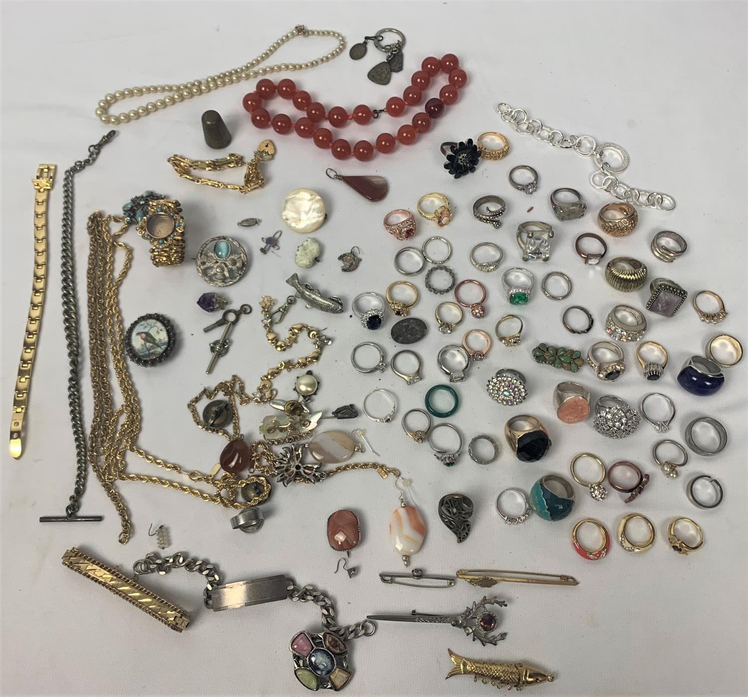 TRAY OF VINTAGE JEWELLERY & RINGS