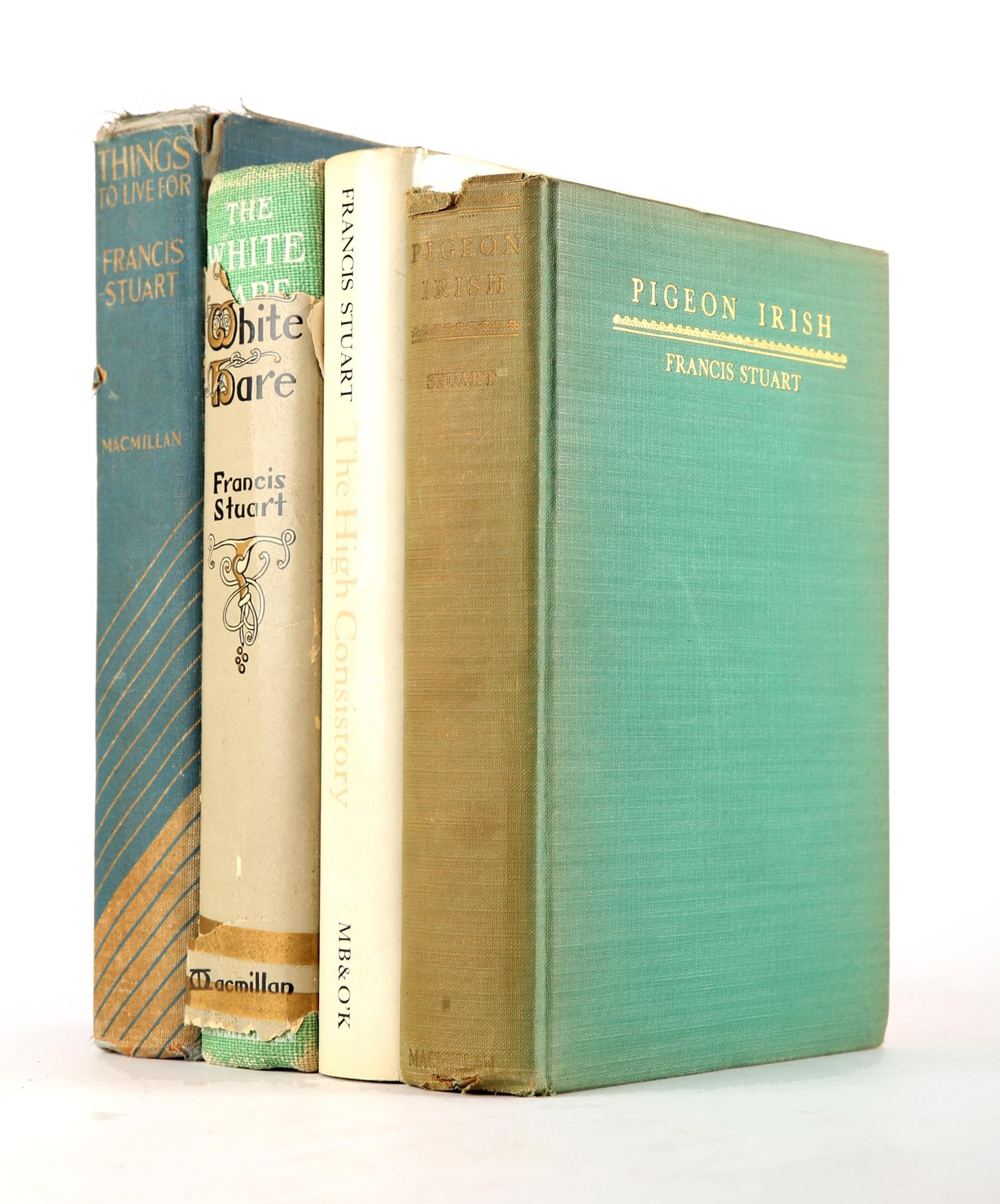 Stuart, Francis. The High Consistory, signed first edition; together with Pigeon Irish, 1932; Things to Live For, 1935; and The White Hare, 1936 (4)