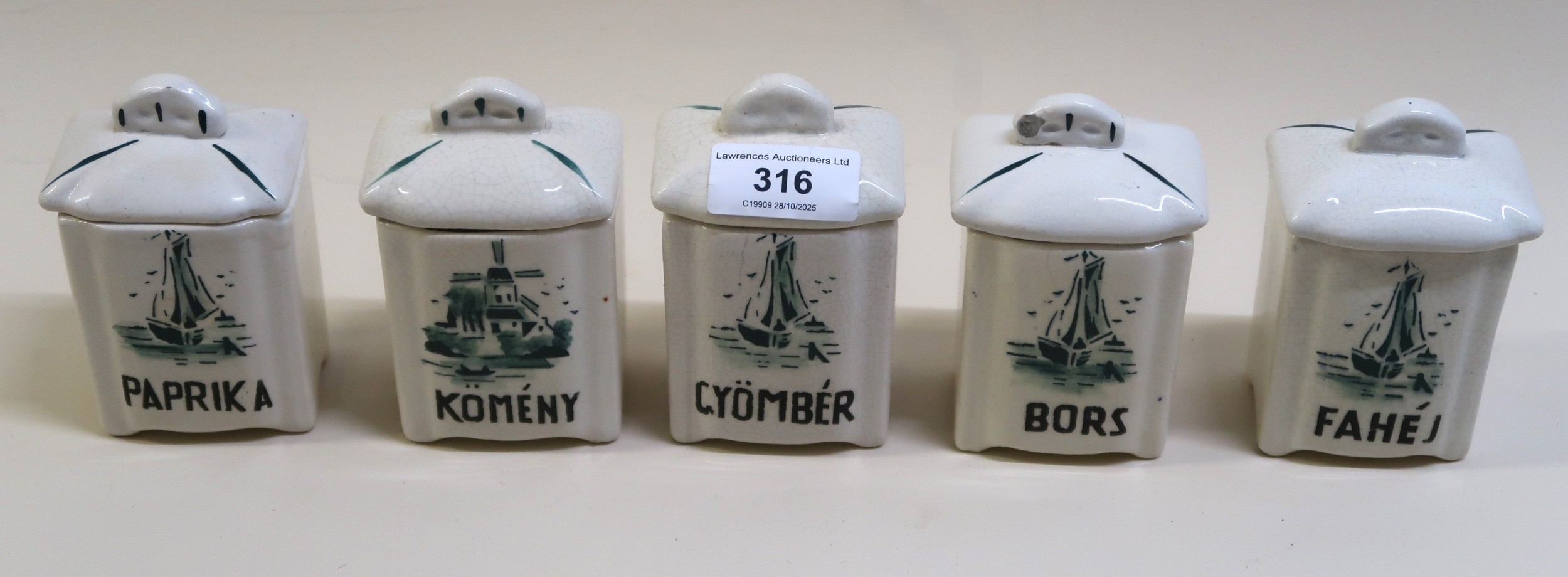 Fischer Hungarian pottery, set of five spice jars