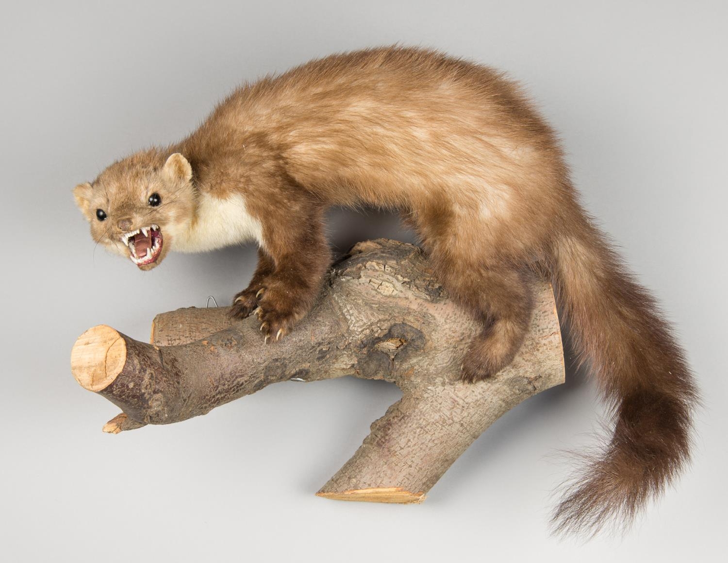 A LATE 20TH CENTURY TAXIDERMY PINE MARTEN UPON A NATURALISTIC BASE