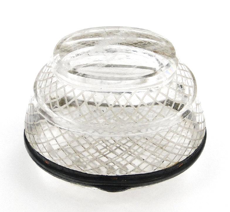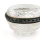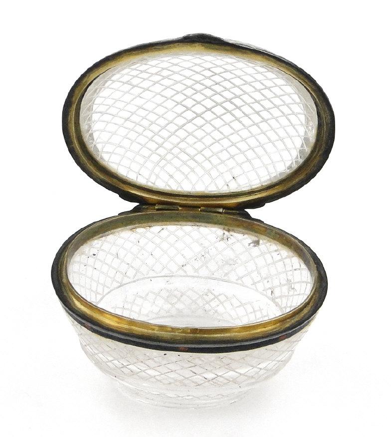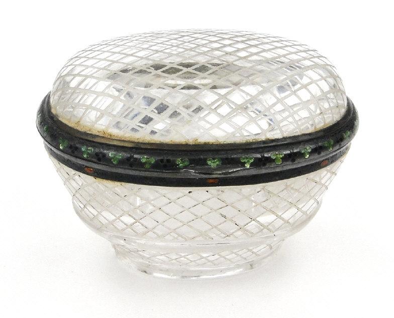 French silver and enamel mounted rock crystal trinket box, 6cm wide