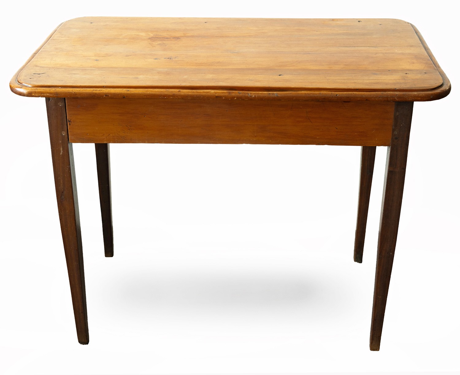 The moulded rounded rectangular top above a plain frieze, on square-section tapering legs
