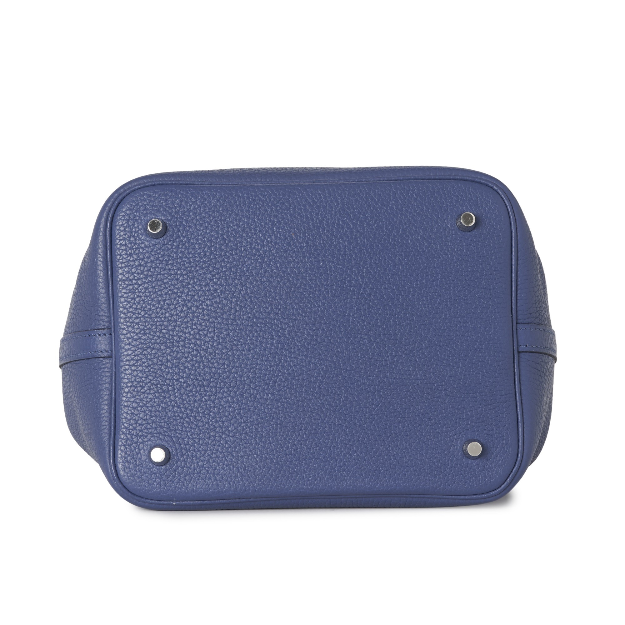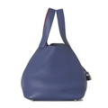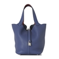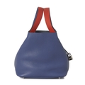 Hermes, a 2018 Picotin 22 bucket bag, crafted from Bleu Brighton taurillon Clemence leather, with Palladium-plated hardware, dual Capucine red Swift leather lined handles, an open top with lockable strap fastening, padlock and key, four protective base studs, and an unlined leather interior, measuring 18 by 22 by 22cm, with maker's dust bag, box and receipt