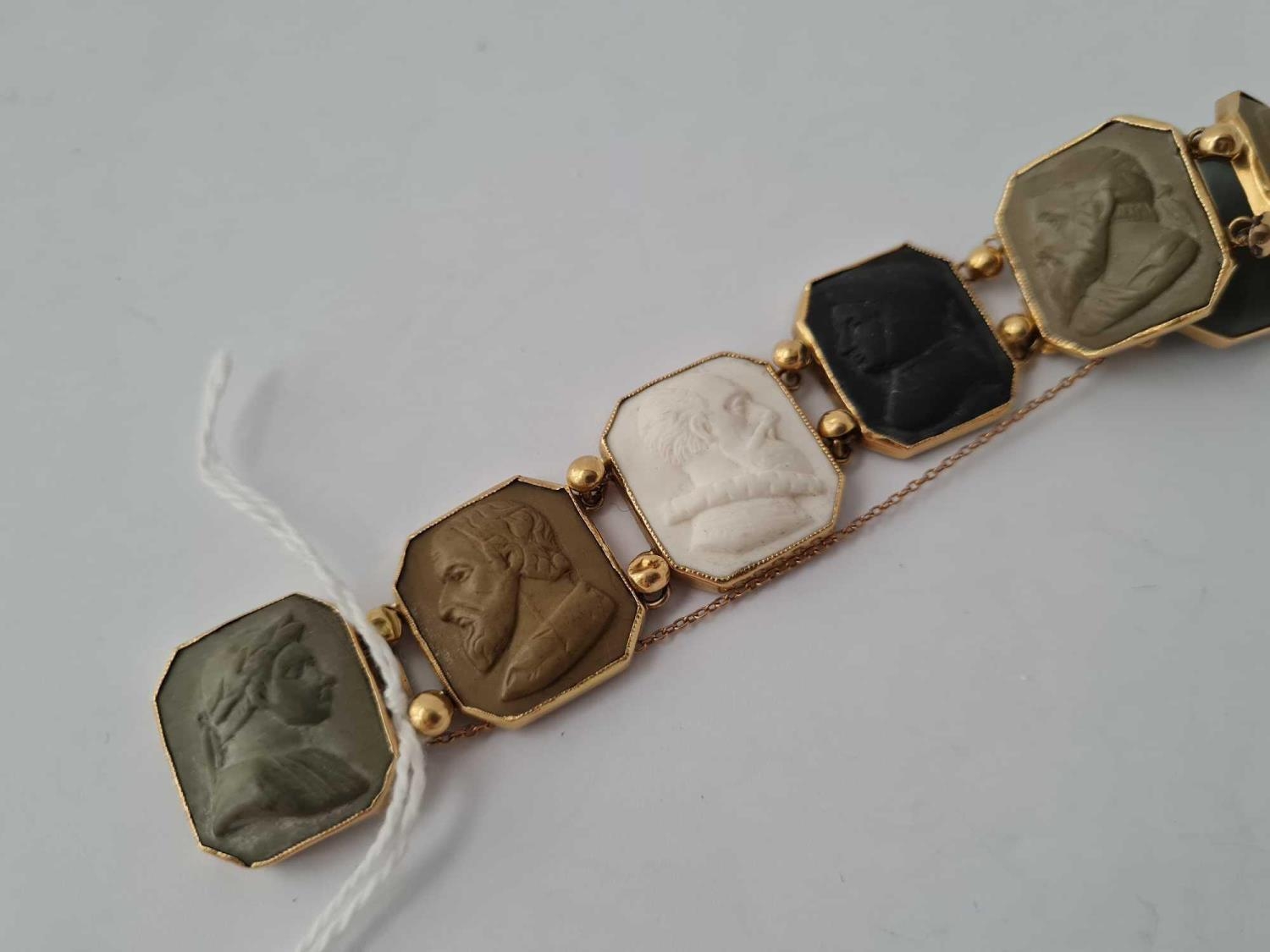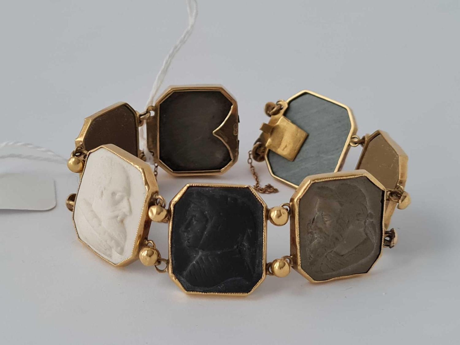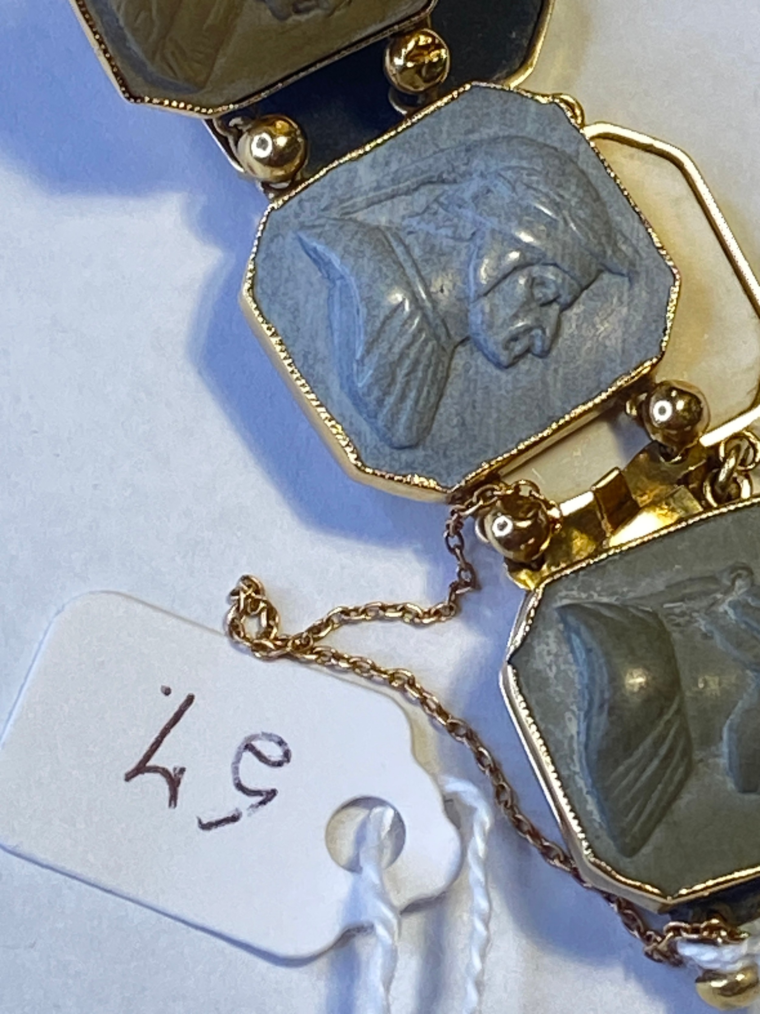 EARLY VICTORIAN HIGH CARAT finely carved Lava cameo bracelet